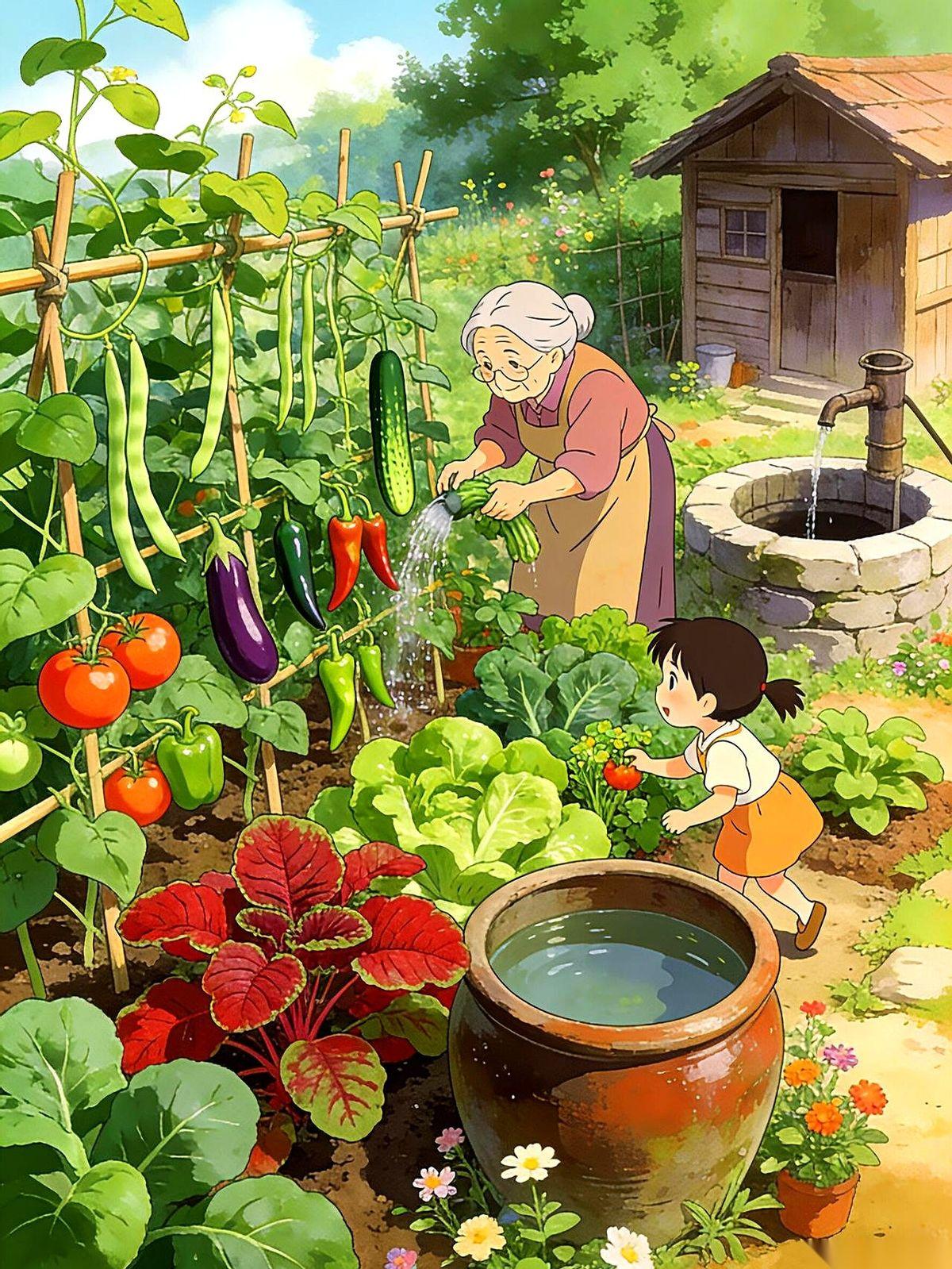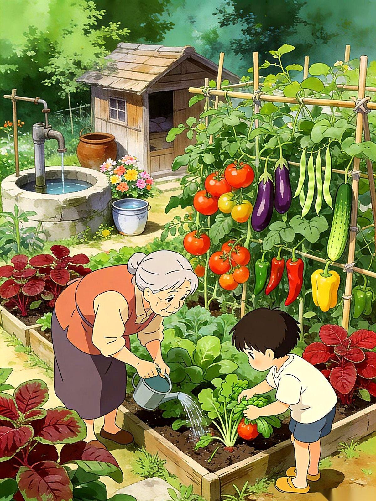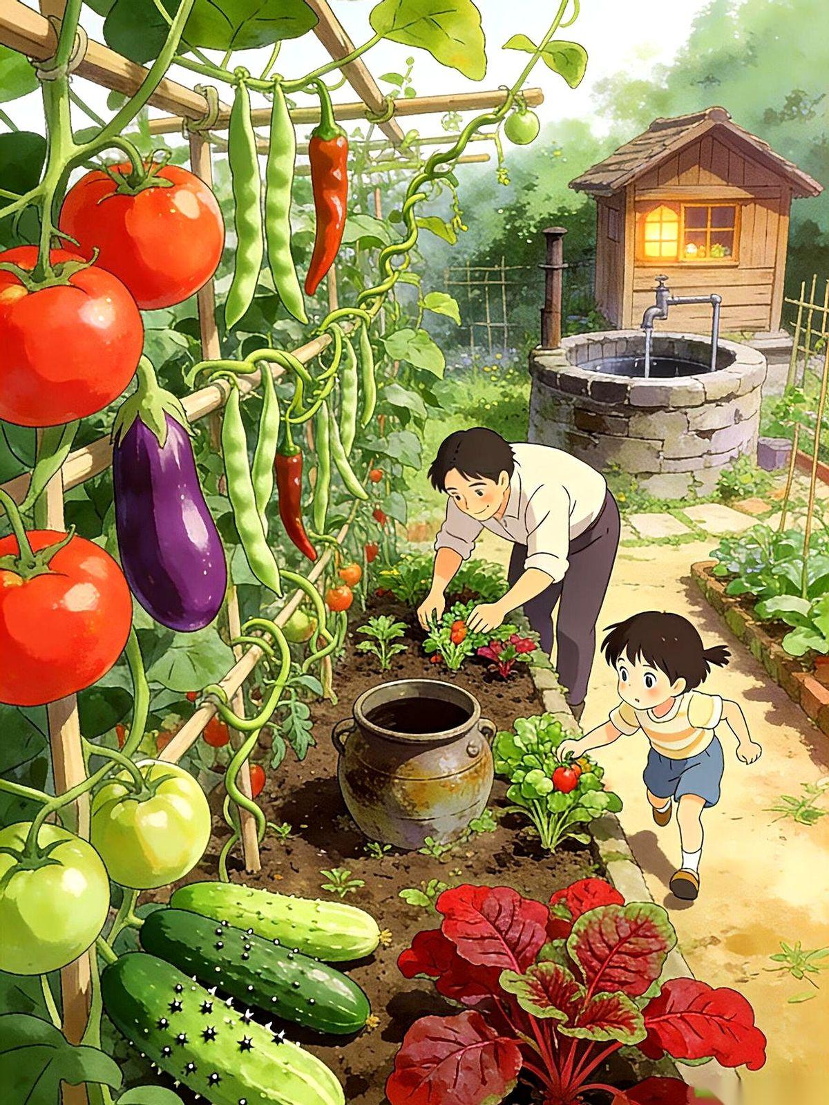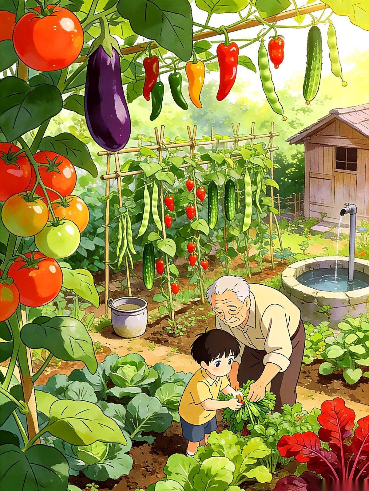 我跟你说,现在什么最奢侈? 不是包,不是车。 是这种,一个带院子的老家。 一个有井,有菜园子,有阿公阿婆的老家。 井水提上来,浇在被太阳晒得发烫的生菜叶子上,那股带着泥土味的凉气儿,一下子就炸开了。 小孩子懂什么,就觉得好玩,伸着手去够架子上的红番茄,大人在旁边看着,笑得比那夏天的阳光还暖。 我们这代人,尤其是在城里扑腾的,对“食物”的概念,是从超市的保鲜膜开始的。 我们知道它的价格,知道它的产地标签,甚至知道它的卡路里。 但我们不知道它在土里是什么样,不知道它开花是什么颜色,更不知道,被刚从藤上摘下来,还带着太阳温度的黄瓜,是什么味道。 这种院子,装下的哪里是几筐蔬菜啊。 装下的是一个孩子的整个童年,是一个家的根,是那种你闭上眼,就能闻到的,踏实的人间烟火气。 真好啊。 很多人小时候有过,现在……没了。