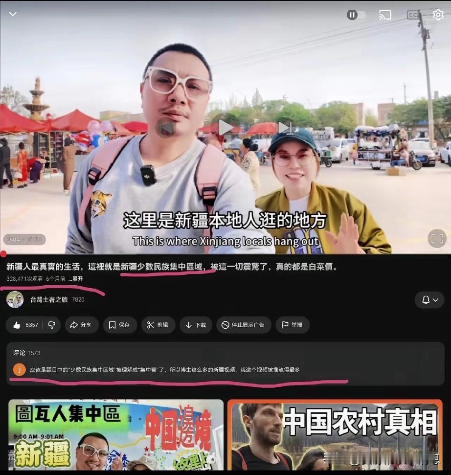 一油管博主,平时视频播放量几百,这几天突然播放量激增,普通视频播放量达33万次,博主很意外。 因为这类视频平时只有几百次观看。原因竟是把新疆人集中区域理解成类似集中营的意思,才导致了这条视频被大量推送。 博主特意做了两条对比,一条是王力宏演唱会当天宇树机器人跳舞视频。一条是马斯克转发的特斯拉宣传动态。演唱会里宇树机器人跳舞没有触及任何敏感词,但却遭到了限流,播放量惨淡。相比之下,马斯克转发的特斯拉宣传动态,却获得了大量流量。