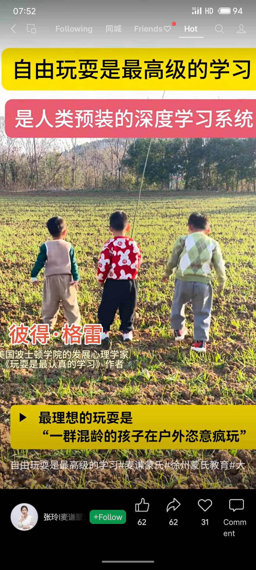 心理学家彼得·格雷指出,自由玩耍是人类预装的深度学习系统,是最高级的学习形式。他倡导让混龄孩子在户外尽情玩耍,认为这是最理想的学习方式。
