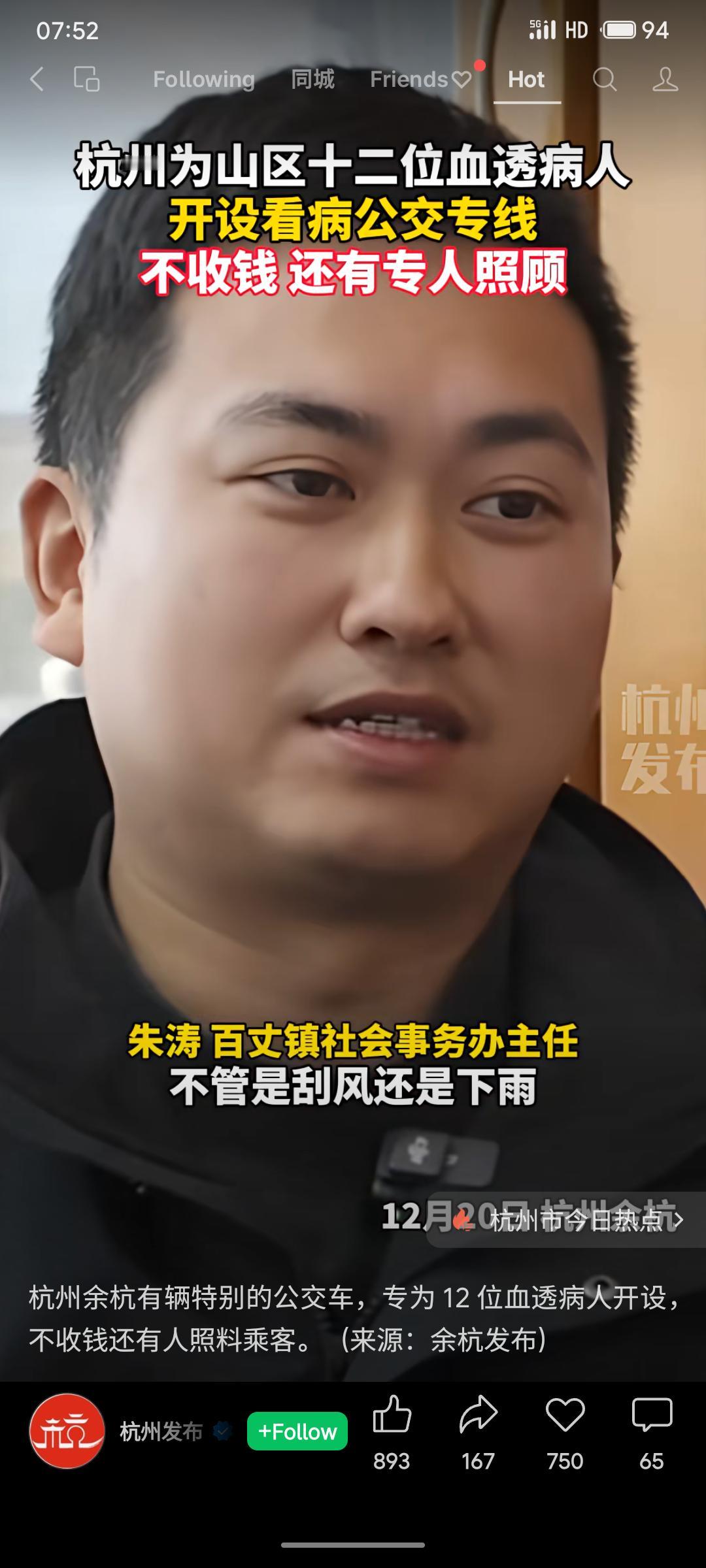 一条由杭州余杭开通的暖心专线,专门服务于山区12位需定期血透的患者。它不仅免费接送、配有专人照料,更解决了病人风雨无阻就医的出行难题,以细致的公共服务传递城市温度,体现了城市对特殊群体的关怀与保障。