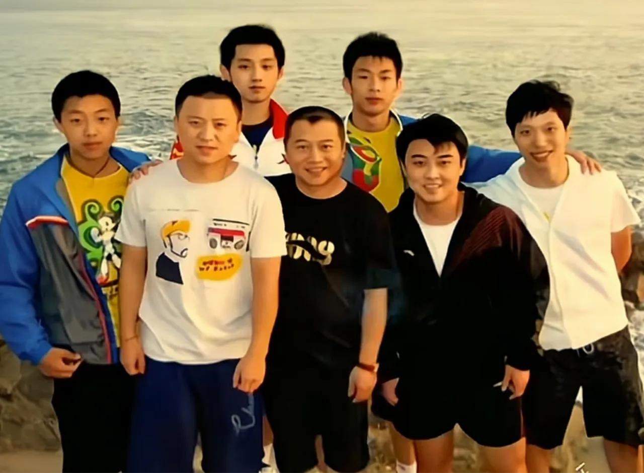 考验咱眼力的时候到了:这张老照片中我只认出了英姿勃发的王皓,气色盈和的王涛与痩削挺拔的张继科,作为资深球迷的你认出其余4位了吗?