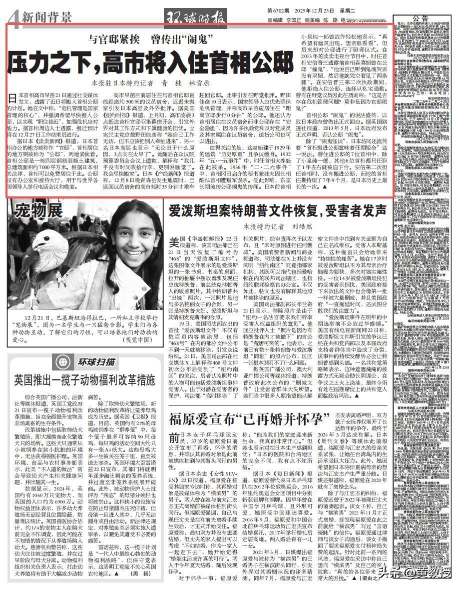 高市早苗,惨了[酷拽] 环球时报报道