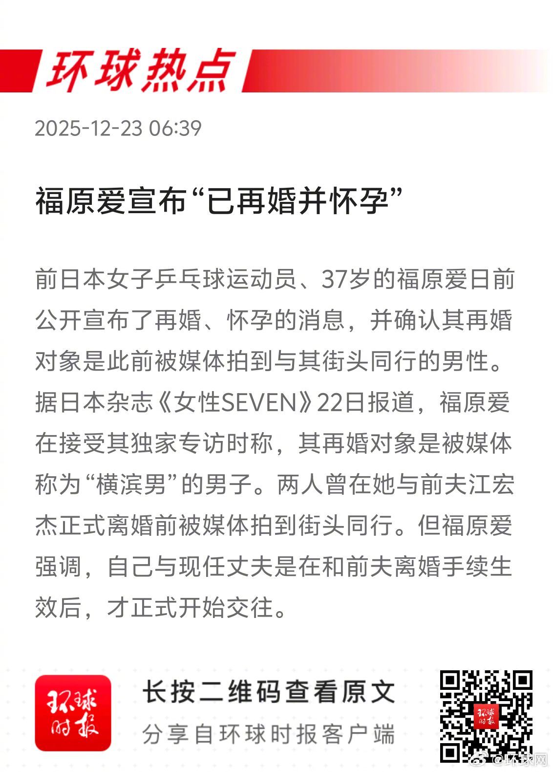 【#福原爱宣布已再婚并怀孕#】前日本女子乒乓球运动员、37岁的福原爱日前公开宣布