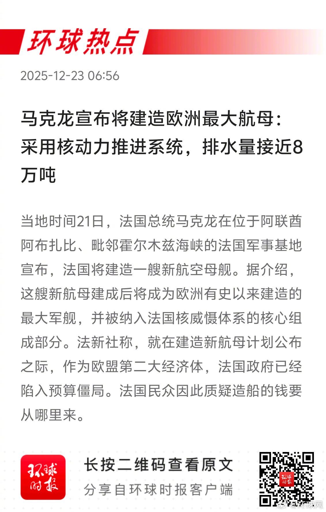 #马克龙宣布将建造欧洲最大航母#【马克龙宣布将建造欧洲最大航母:采用核动力推进系