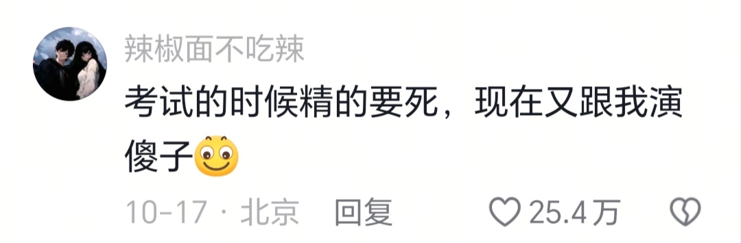 考试的时候精的要死,现在又跟我演傻子