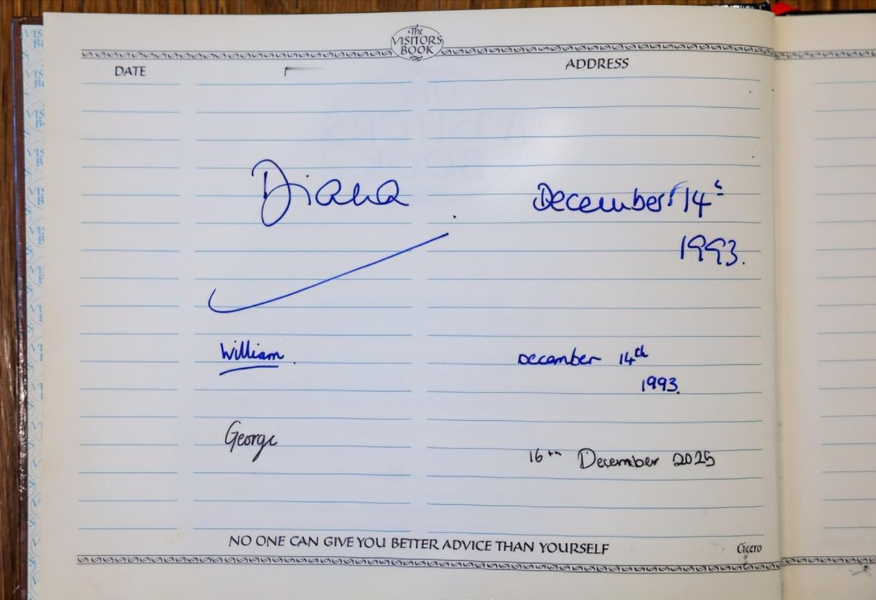 戴安娜王妃、威廉王子、乔治王子,祖孙三代在一张签名簿上团聚了! 1993年12月14日,还是威尔士王妃的戴安娜带着她的大儿子——才11岁的威廉王子访问了慈善机构The Passage。 在32年后的2025年12月16日,成为威尔士亲王的威廉王储在参加完查尔斯国王在白金汉宫主持的圣诞午餐会后,也首次携他的大儿子12岁的乔治王子一起在伦敦访问无家可归慈善机构The Passage。 相隔32年,在相差了2天的日子里,父子俩仿佛复制了32年年前戴安娜和威廉母子俩。 1993年,戴安娜王妃和威廉王子在留言簿上签字纪念。 如今,孙子乔治王子也在同一本留言簿,同一页上签下了自己的名字。 这一张薄薄的纸,祖孙三代团聚了,是一种传承,也是一种温情,却也带着遗憾。