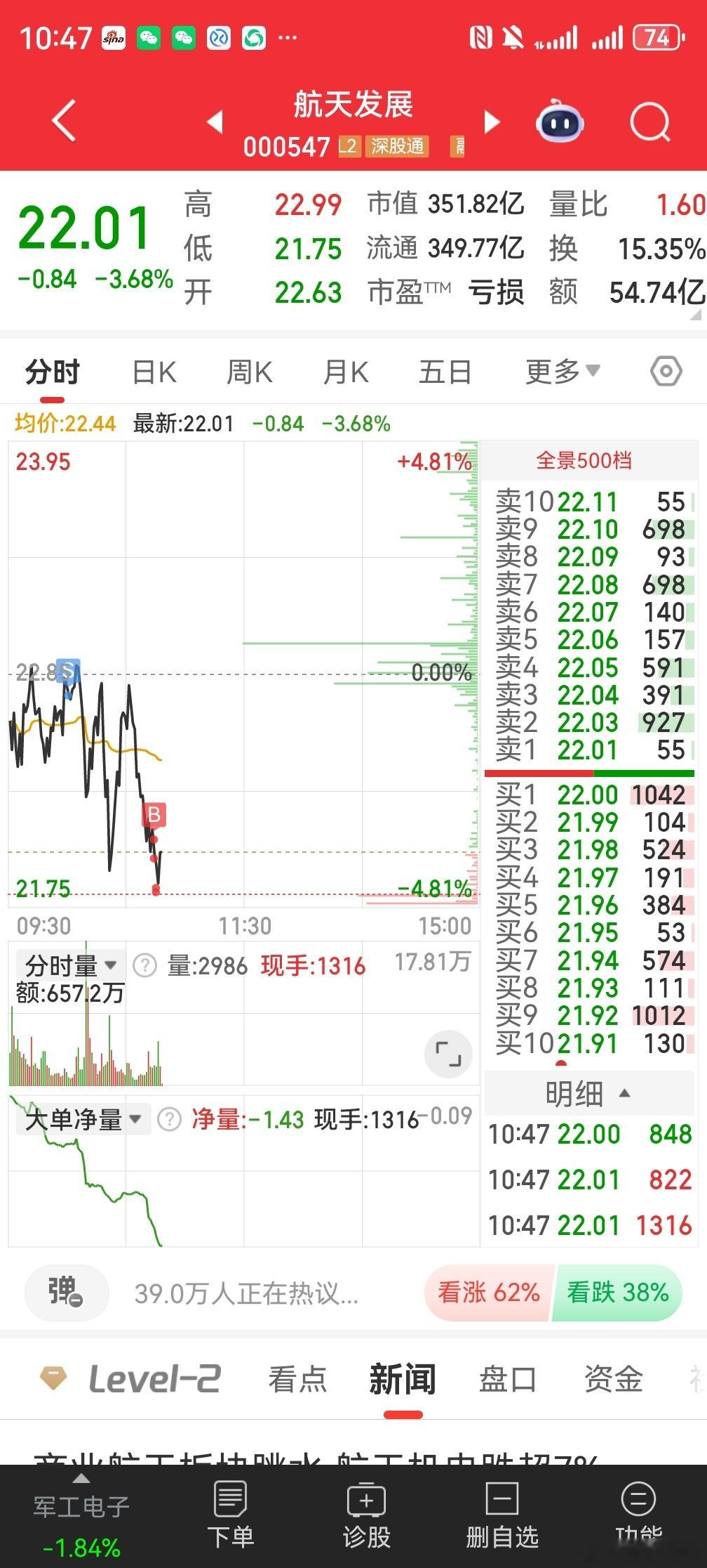 当心!12月22日,前3天主力大幅卖出的30名单航天电子:3日主力净流出20