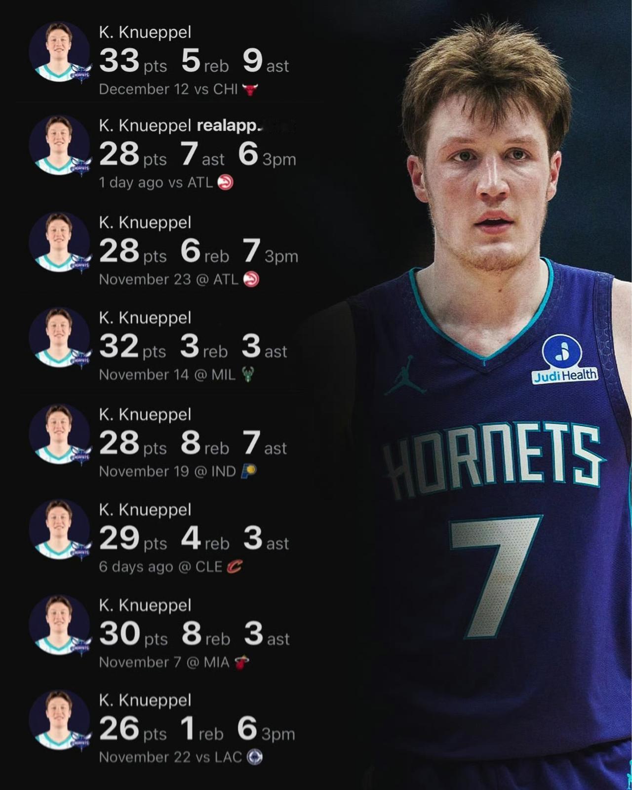 黄蜂2025届4号秀康·克努佩尔(Kon Knueppel),2025-26赛季至今他的表现堪称新秀最强即战力: 场均34分钟,19.4分5.4篮板3.6助攻0.8抢断 场均3.5记三分,总命中数联盟第二;47.3%投篮+40.9%三分,真实命中率62.8% 29场投进100记三分,刷新NBA历史最快纪录,比此前马尔卡宁的41场快12场 他是6尺6寸锋卫摇摆人,杜克出身,黄蜂战术核心之一,也是最佳新秀的头号热门。稳定输出+历史级三分效率,让他成为这届新秀里最亮眼的即战力,也被视作白人射手的“终结形态”之一。