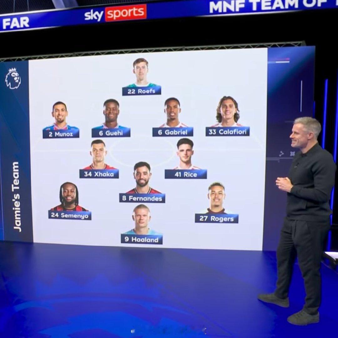 卡拉格评选本赛季迄今为止英超最佳阵容,加布里埃尔、卡拉菲奥里和赖斯入选!阿森纳 英超联赛