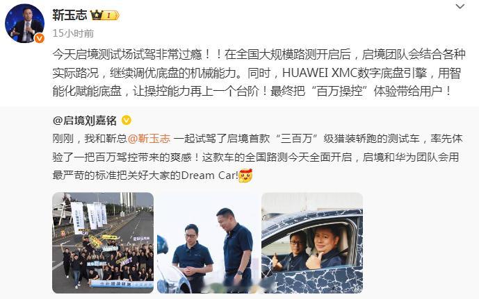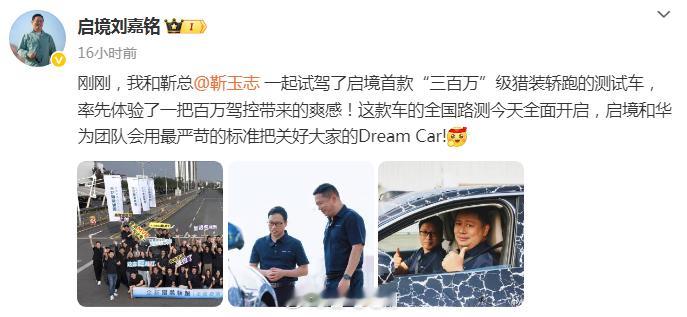 华为乾崑与启境汽车联合打造的首款猎装轿跑,在广州正式开启大规模路测。最令人想不到的是,华为车BU CEO靳玉志和启境CEO刘嘉铭都亲自上车试驾。新车定位“三百万”猎装轿跑,分别是百万颜值、百万驾控和百万智能。华为智驾与最新的技术全都包了,看得出华为十分看重“境”系列的首秀。这辆“三百万”轿跑真的引起大家的注意了,明年六月见~华为系首款猎装轿跑曝光