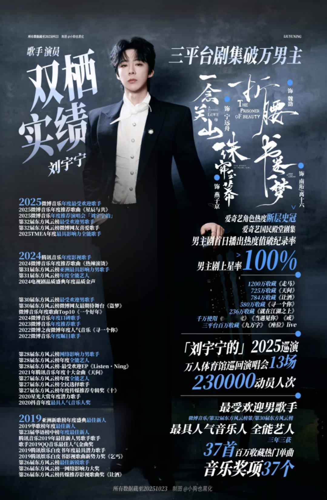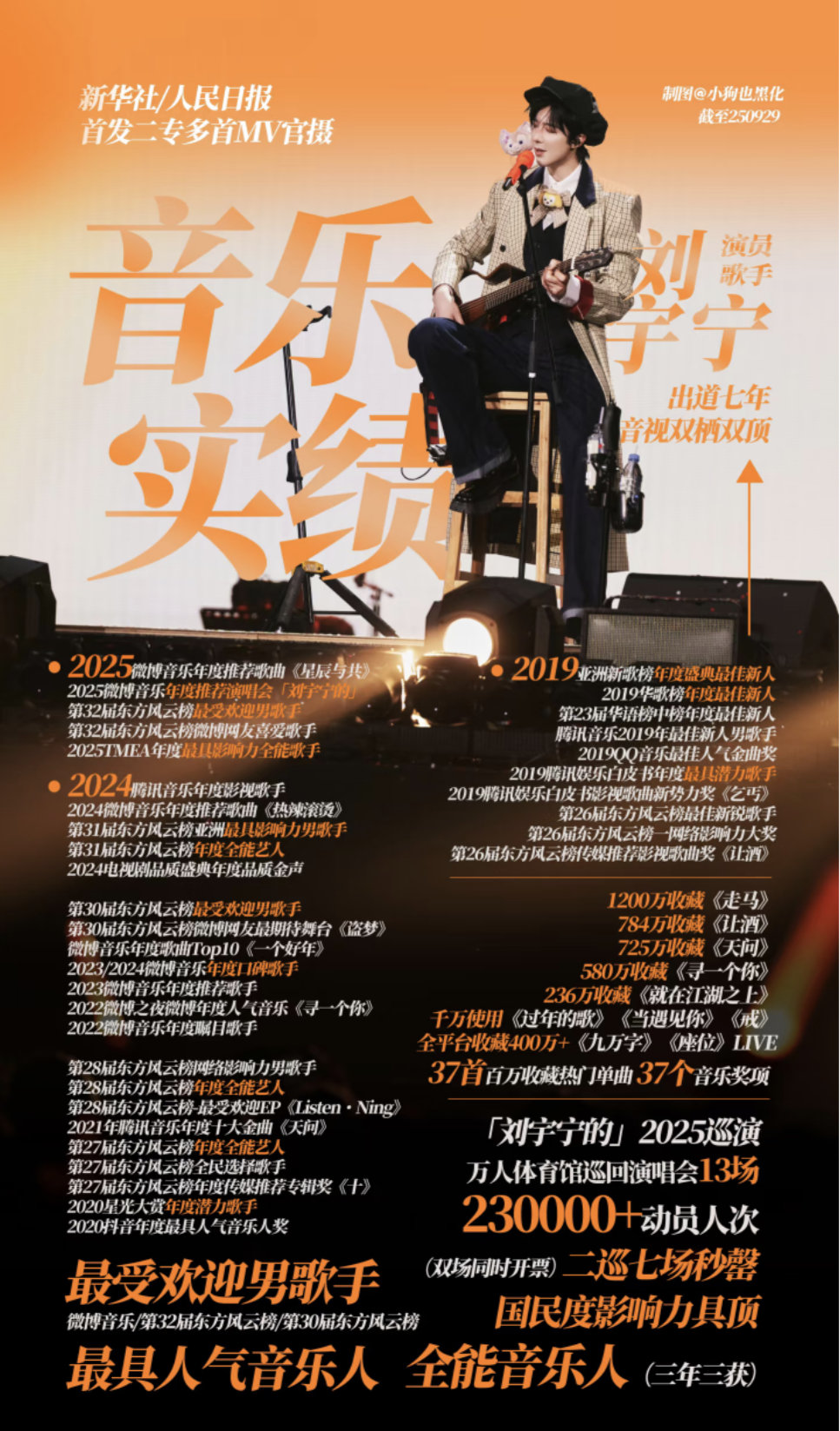 刘宇宁正式官宣酷狗音乐代言人 刘宇宁三平台破万大满贯在手,725万收藏热单见证国民度!万人体育馆巡演23万+观演人次,实力与人气双丰收。恭喜解锁新身份,酷狗听歌,赴一场与刘宇宁的音乐之约~