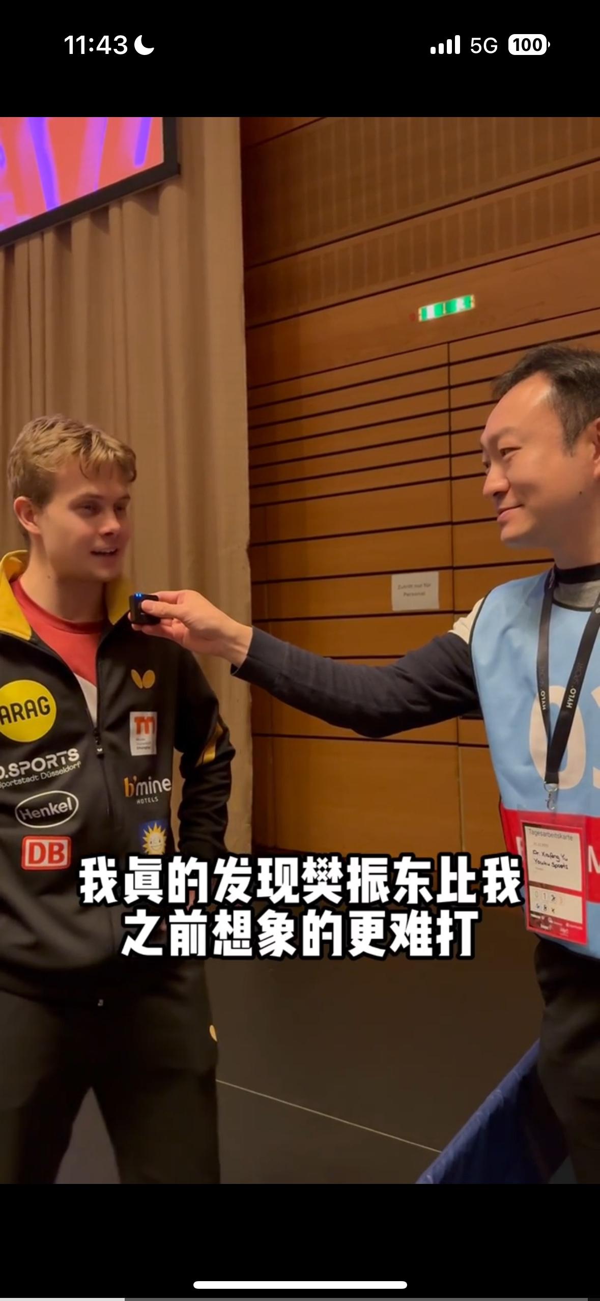 樊振东在德甲的对手豪格接受采访,以为有机会,但是还是输了! 东哥会让对手展示自己的实力,很有力,对手特别肯定! 还说:樊振东比之前更能打,难打的程度超过了之前,东哥的球技这是进步了,在德甲的第一场比赛失利,到现在的稳赢,成长的脚步,豪格这是赤裸裸的夸赞,和樊振东打一场球,让人特别的舒服,还给人一种鼓励感!