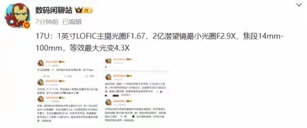 【小米17 Ultra影像规格曝光 1英寸LOFIC主摄+F1.67光圈】博主“数码闲聊站”曝光了小米17 Ultra的影像规格信息。爆料显示,小米17 Ultra预计将搭载1英寸大底LOFIC主摄,提供F1.67的大光圈。长焦方面,新机可能配备一颗高达2亿像素的潜望式镜头,最小光圈为F2.9。同时,爆料还揭示了小米17 Ultra的焦段信息,将提供从14mm超广角到100mm长焦的焦段覆盖,可实现约4.3倍的等效光学变焦能力。官方海报信息显示,小米17 Ultra延续了该系列标志性的居中大圆形相机模组(Deco)设计,徕卡标识位于中央,顶部配备两颗对称排列的闪光灯,或提供黑色、白色和星空绿三款配色。值得注意的是,新机的音量按键将变为独立的类圆形设计。多方爆料信息显示,小米17 Ultra预计搭载一块约6.85英寸的LTPO OLED直屏,采用四边超窄边框设计。据悉,小米17 Ultra或将搭载高通第五代骁龙8至尊版移动平台,内置6800mAh超大容量硅碳负极电池,支持100W有线快充和无线充电,机身厚度可能控制在约8mm,重量约为227克。此外,小米17 Ultra有望将提供支持天通卫星通话和北斗卫星消息的高配版本,以及标配UWB(超宽带)技术。小米17 Ultra将于2025年12月25日19:00正式发布,发布会的主题为小米与徕卡影像战略合作的升级。