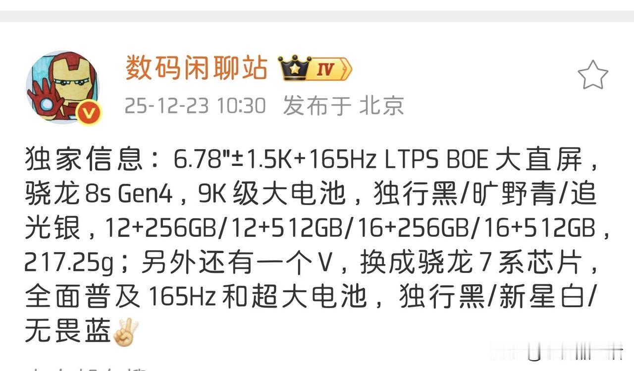 曝一加Turbo系列将全面普及165Hz和超大电池! 今日,知名数码博主“数码闲聊站”爆料了一加Turbo系列的相关信息。 该系列将带来两款机型,其中,一加Turbo+采用6.78英寸左右的1.5K+165Hz LTPS BOE大直屏,搭载骁龙8s Gen4处理器,内置9000mAh级别的大电池,提供独行黑/旷野青/追光银3种配色,12+256GB/12+512GB/16+256GB/16+512GB,机身重217.25g; 另外还有一个V,或命名为一加TurboV,换成骁龙7系芯片,全面普及165Hz屏幕和超大容量电池,提供独行黑/新星白/无畏蓝3种配色。一加turbo 一加 Turbo