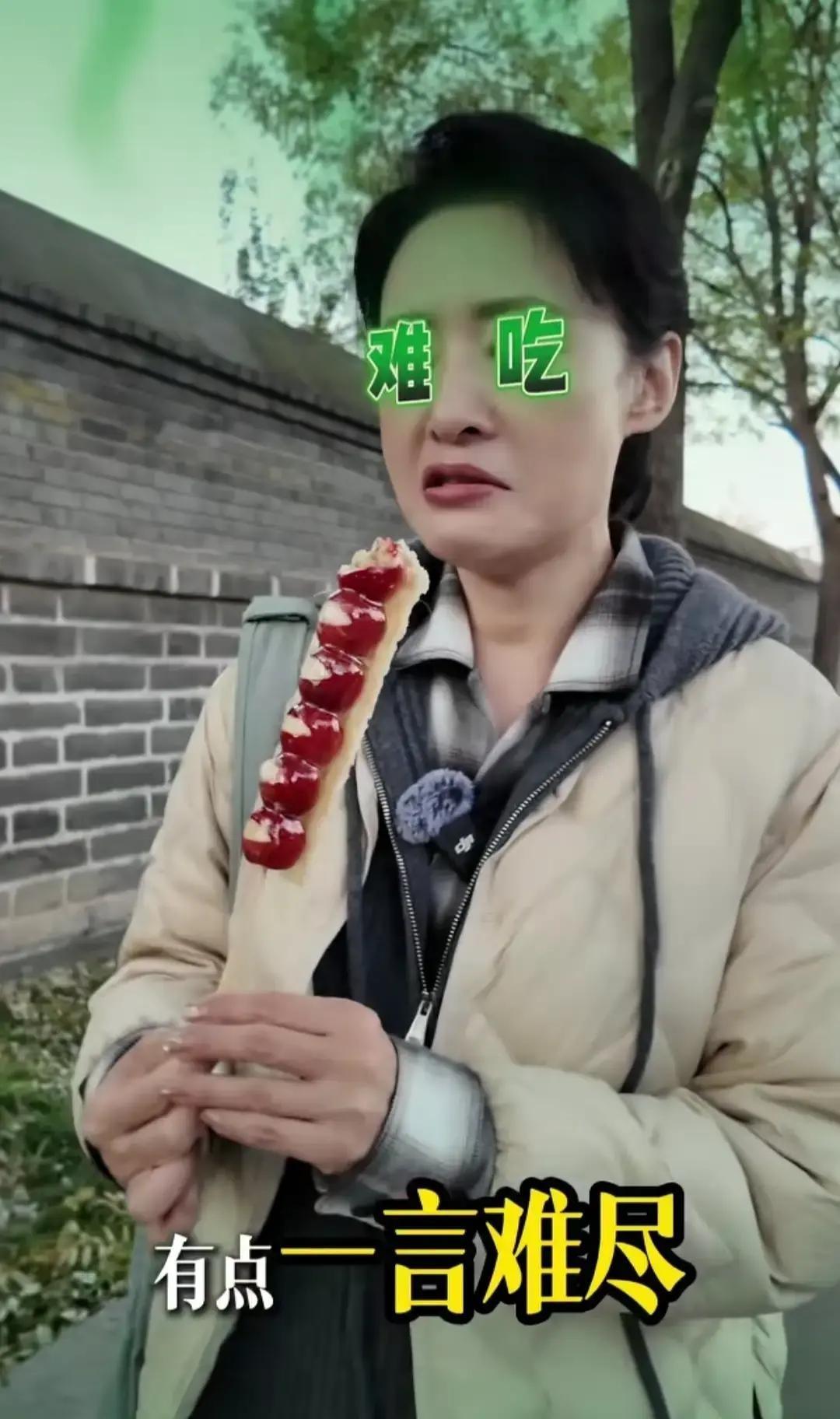 周涛花20块买了根奶皮子糖葫芦,咬第一口就皱眉,说难吃却说不清哪儿怪。 视频被朋友发上网,三小时冲热搜,两亿人围观。 我跟着下单,外壳甜脆,里面奶皮子又腥又黏,像嚼化掉的塑料奶糖,二十块买个教训。 网友分两拨,一拨夸她真性情,一拨嫌她砸招牌。 我站第一拨,花钱买东西还不能说难吃? 景区商户倒乐开花,销量翻三倍,笑称黑红也是红。 公众人物一句实话,让网红小吃现原形,挺好。 真话永远比滤镜值钱,敢尝敢说的周涛比糖葫芦更有味。