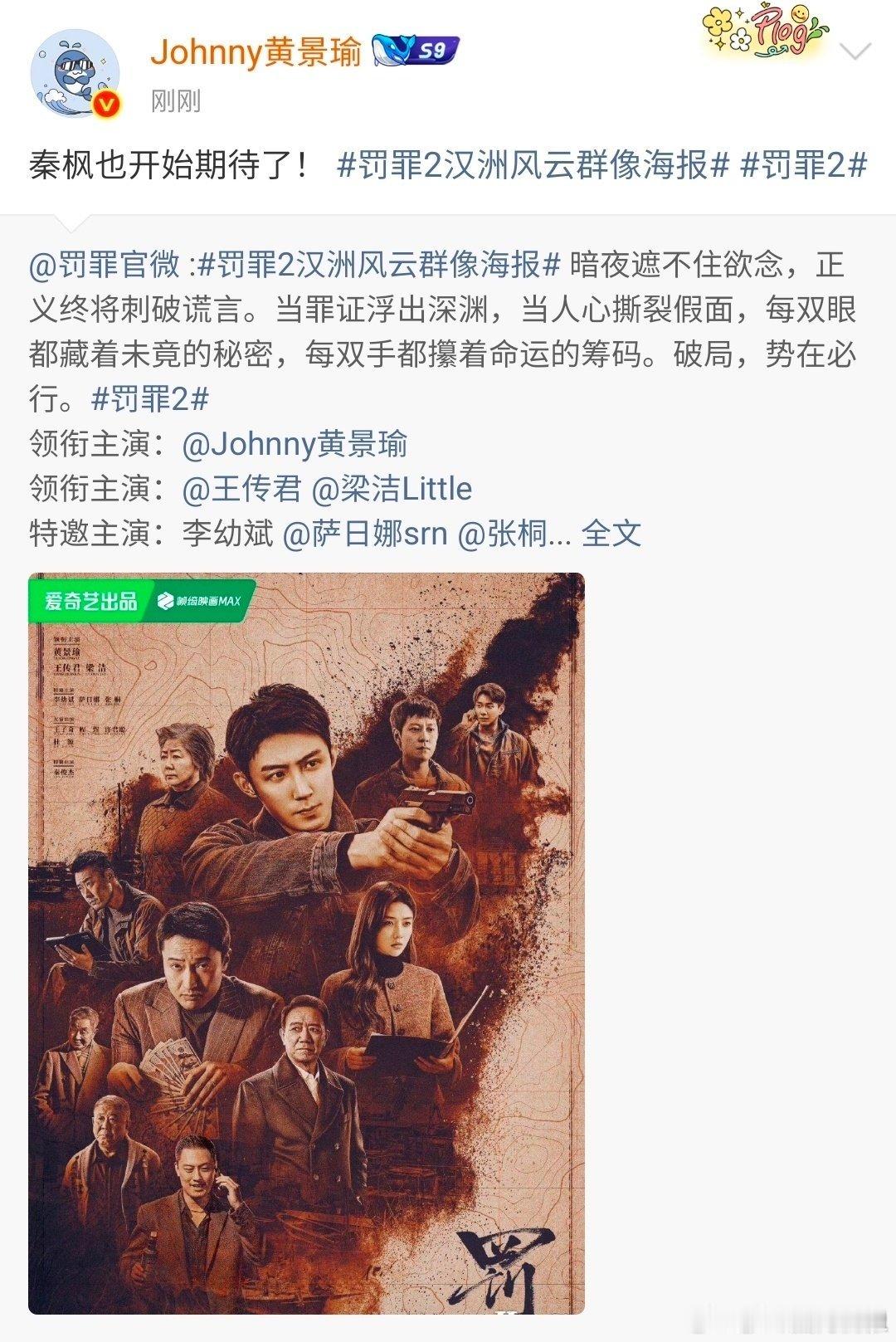 爱奇艺真把黄景瑜的话当个事办了 黄景瑜的活人感发言太吸睛,爱奇艺的行动力更让人刮目相看!《罚罪2》的好消息让人幸福感拉满!