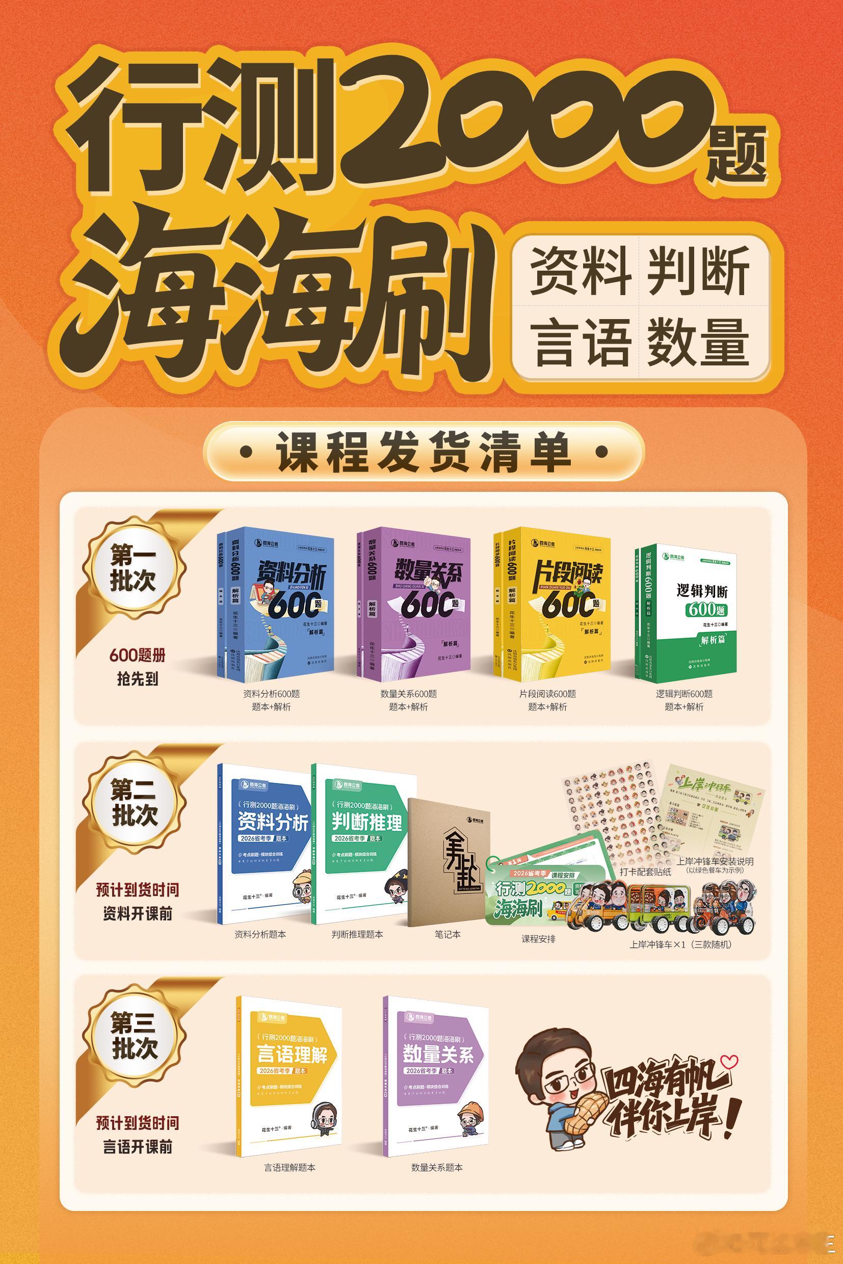 26省考“行测海海刷”第三批讲义开始邮寄啦!第三批讲义包括“言语理解刷题册”和“数量关系刷题册”1月17号“海海刷”模块刷题结束后,我们马上就进入到考前套题冲刺阶段!大家做好准备!省考决战公考26省考公务员