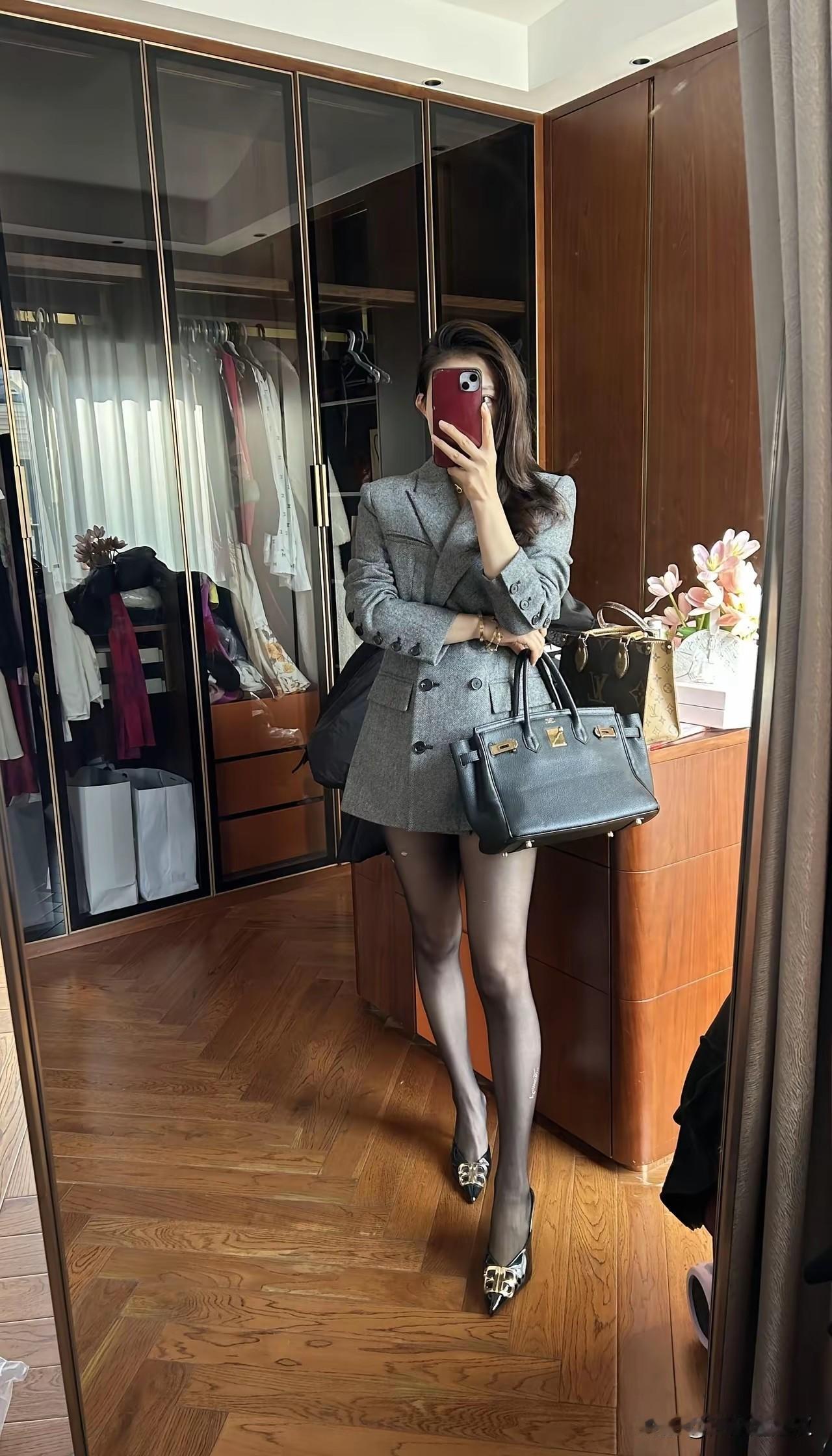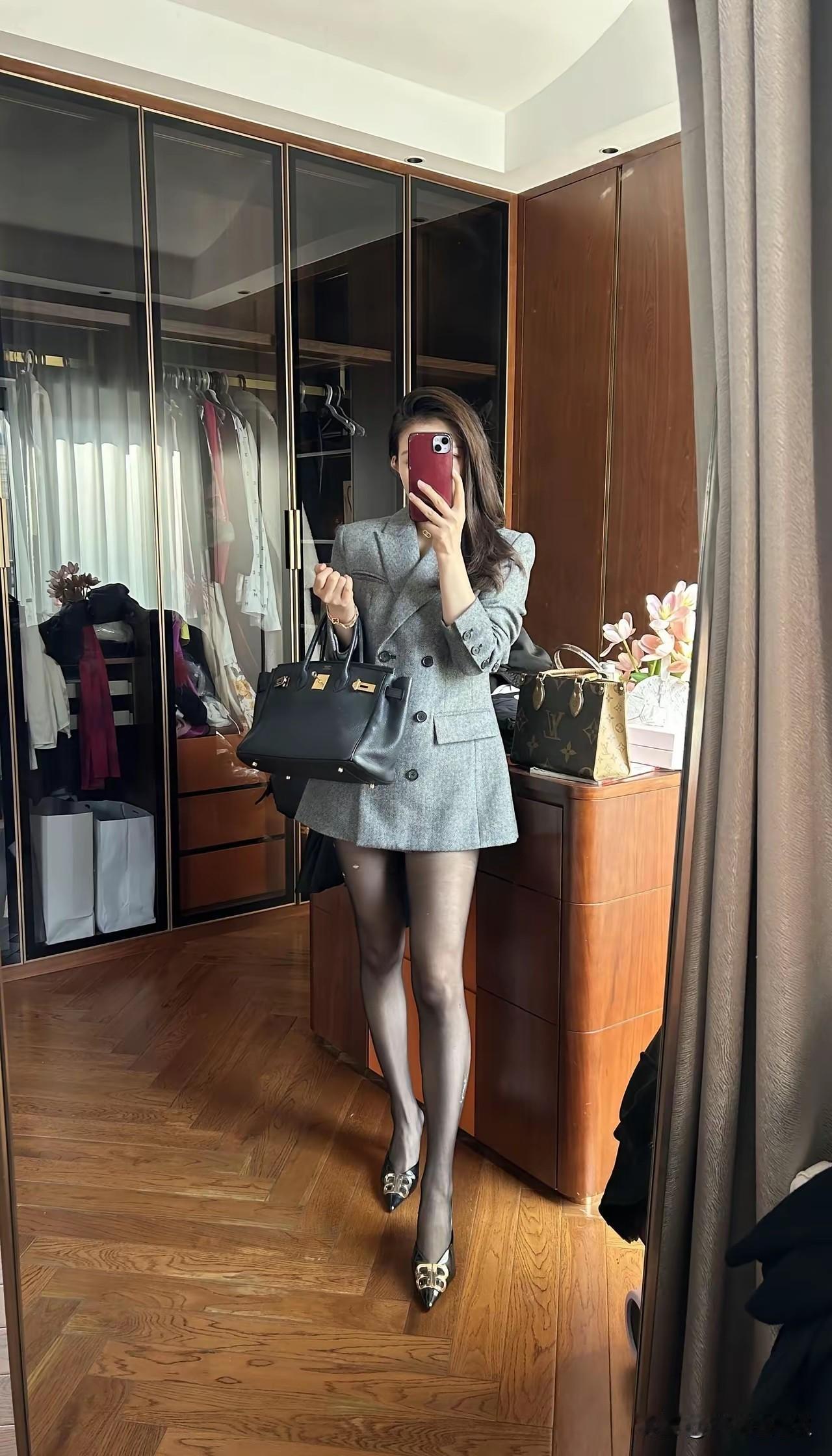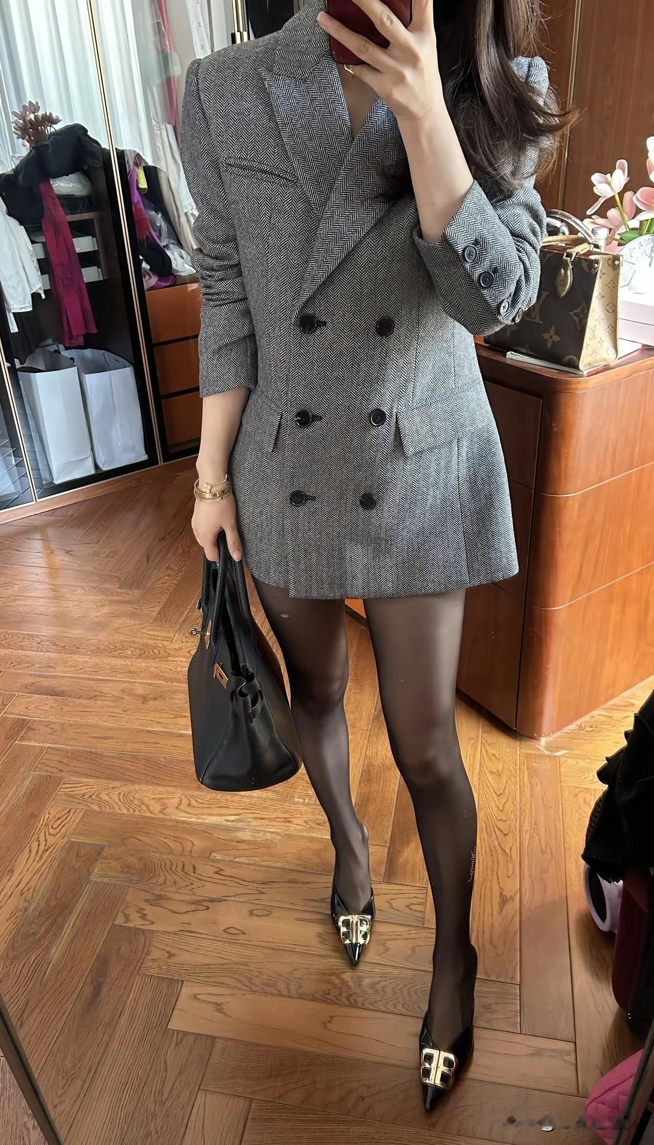 优雅职场风,灰色西装裙搭配丝巾,女性魅力十足!
