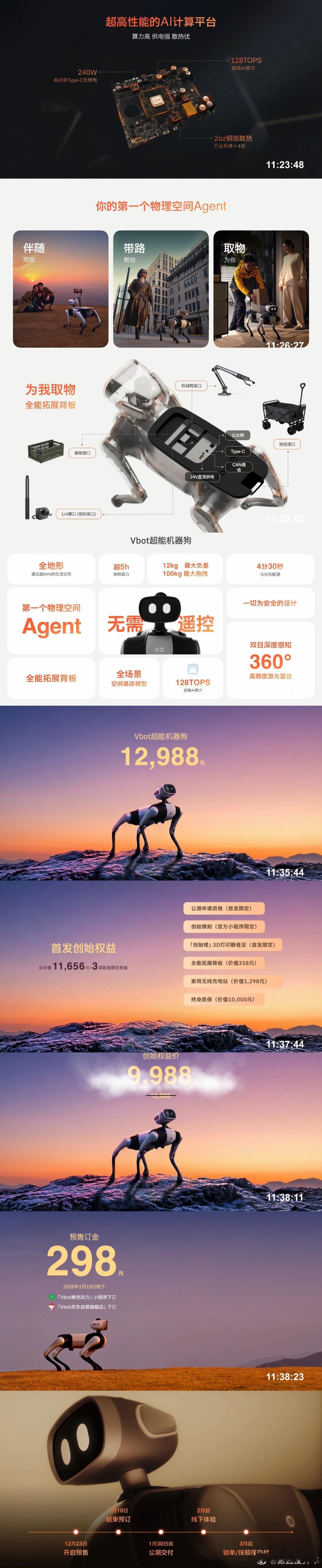 维他动力|大头BoBo:正式售价为 12,988 元,创始权益价格 9,988 元,创始权益价值 11,656 元,明年 3 月起正式交付用户。vbot维他动力机器狗