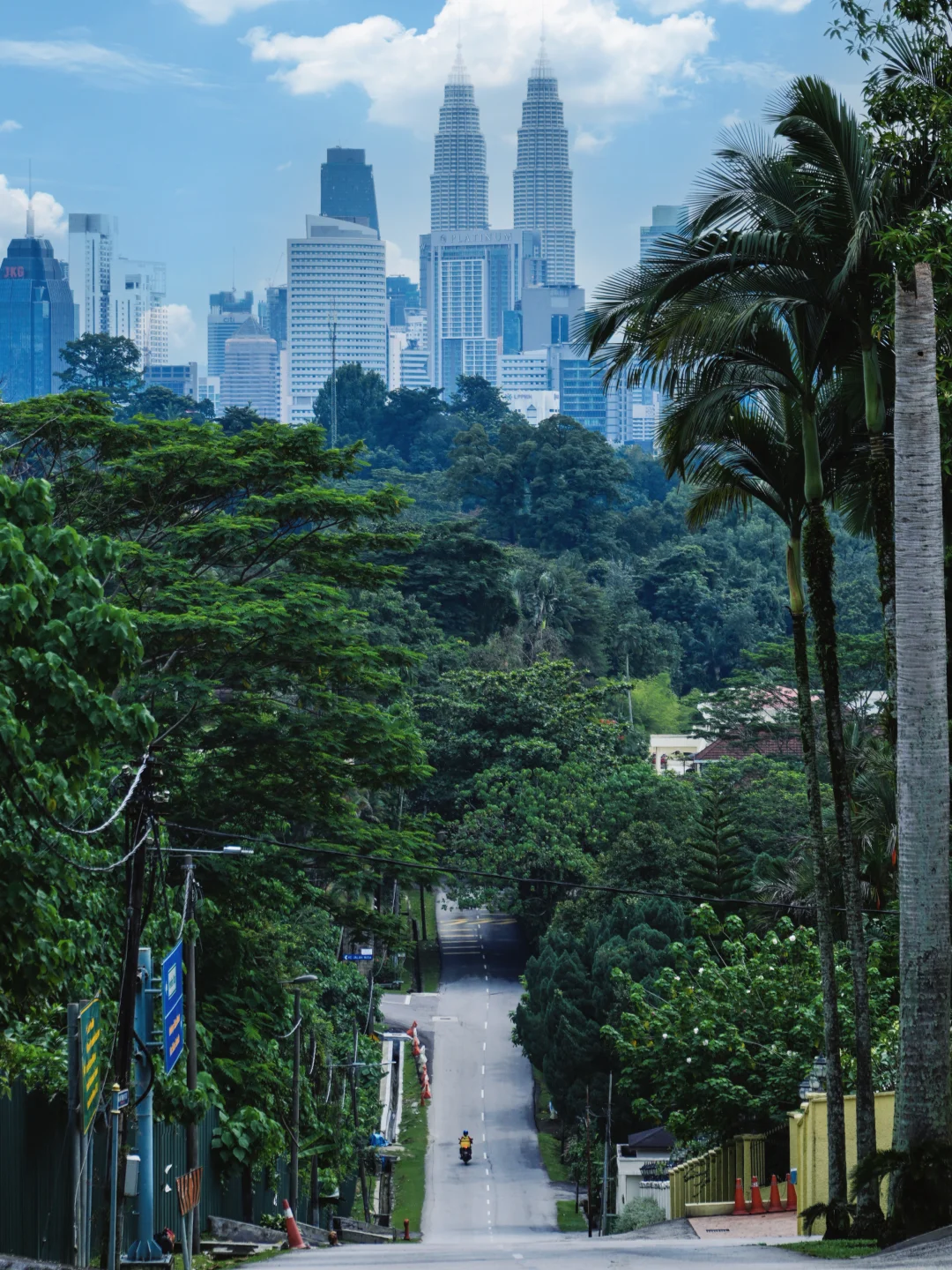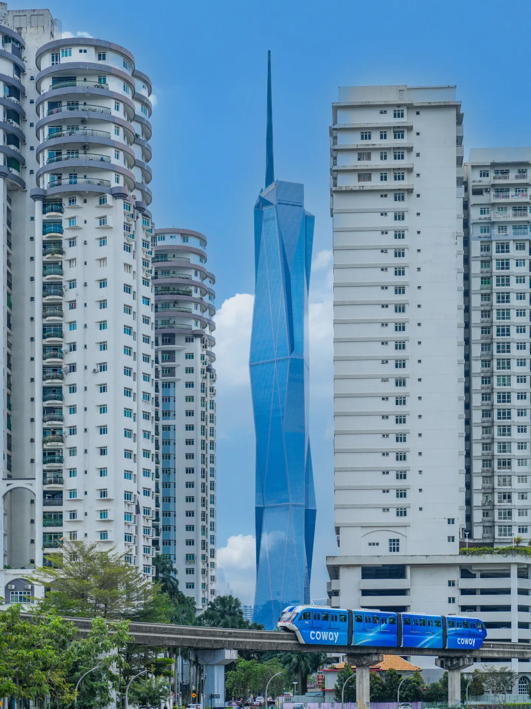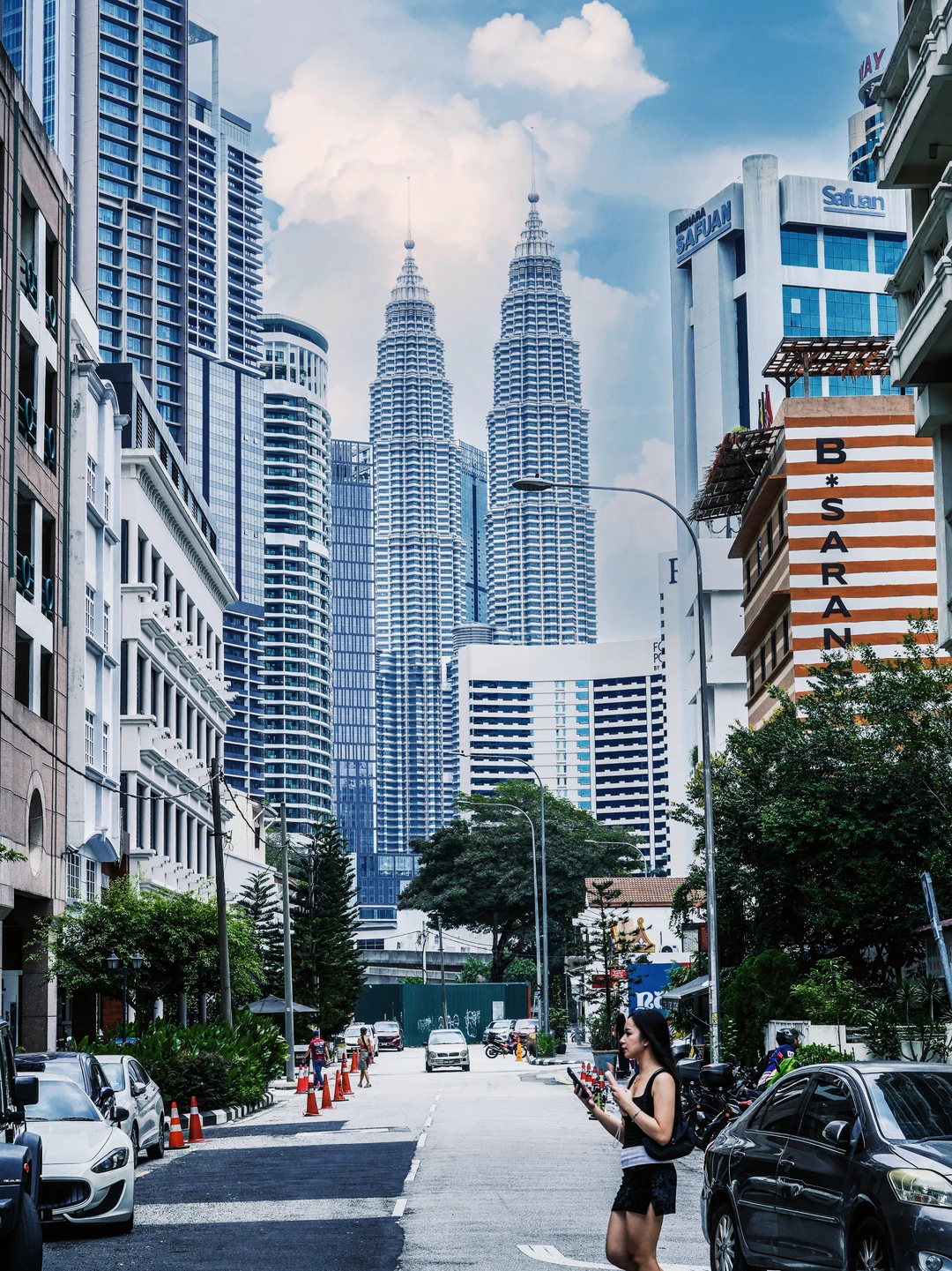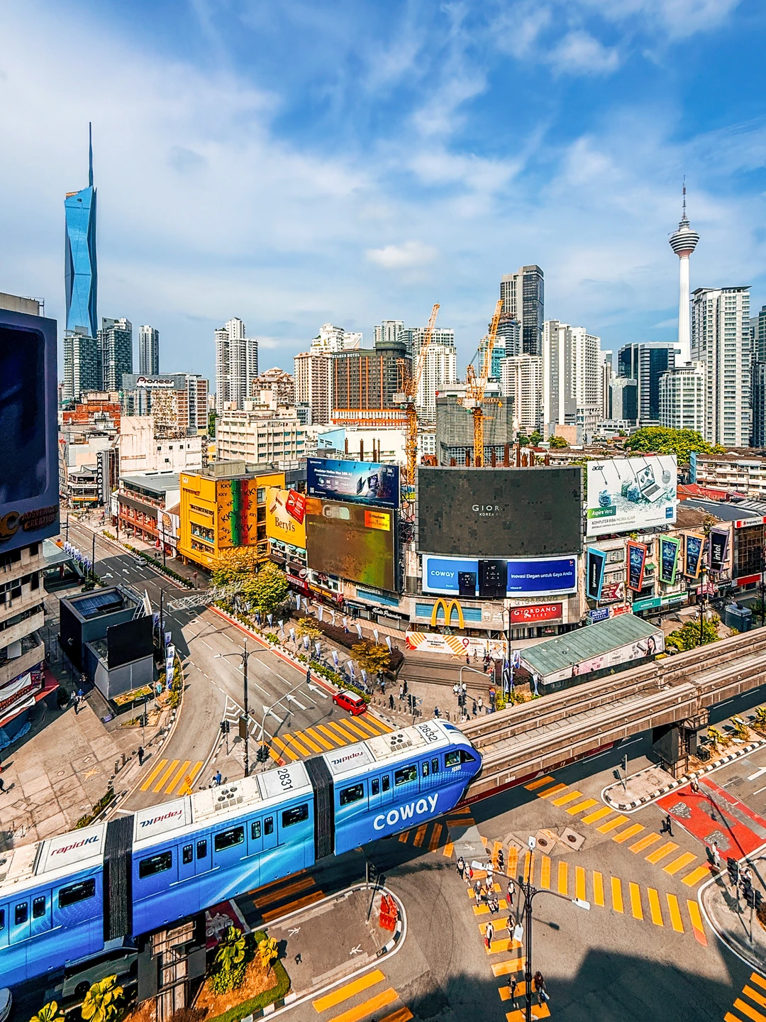网红斑马线➕网红轻轨,背景是吉隆坡塔。