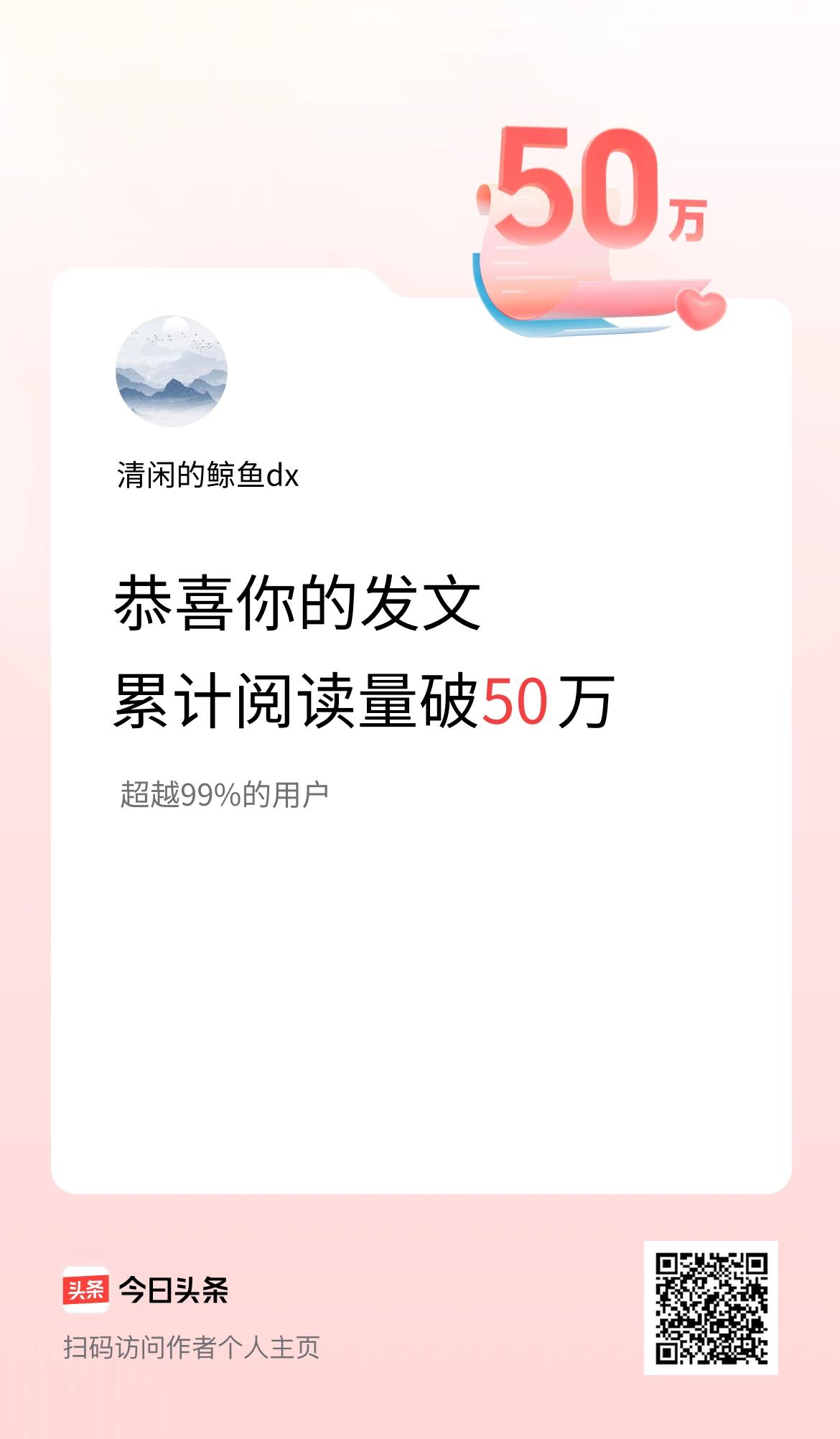 🤝我在头条累计获得阅读量破50万啦!