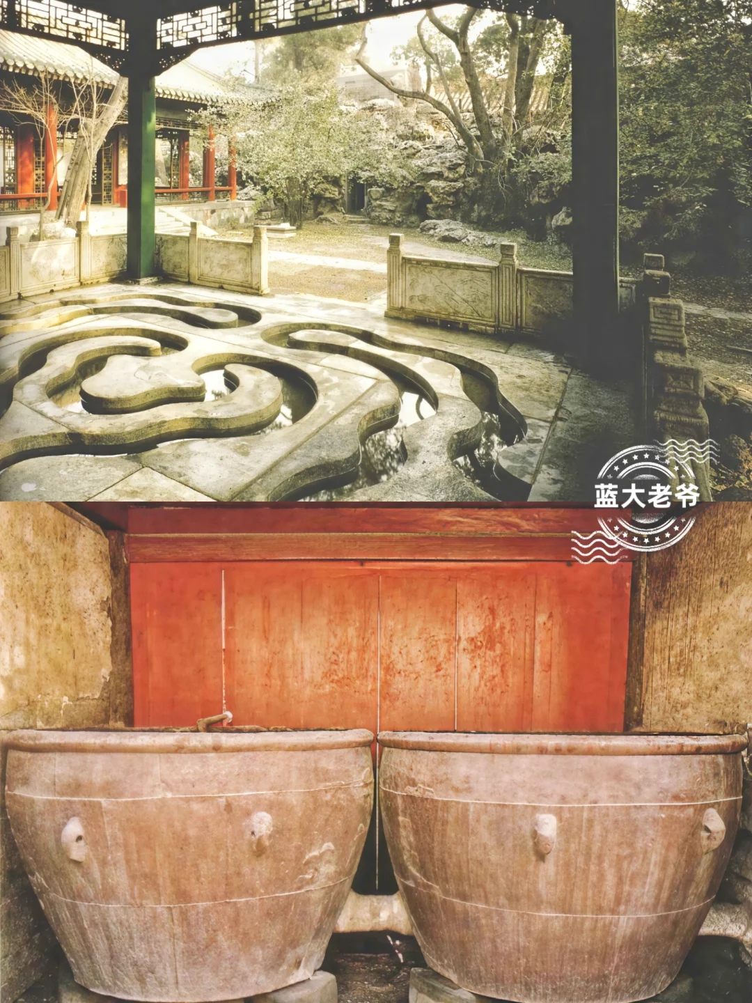 4️⃣禊赏亭;流杯渠贮水用海缸,渠水来自衍祺门内水井,汲水入缸,山下凿出孔道,引水入渠,再从北面假山下孔道流入御沟。