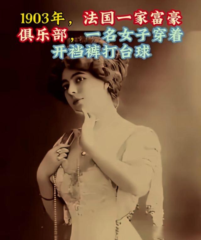 1903年,法国贵妇打台球穿的是开裆裤,不是为了风骚,是因为裙子太大,上厕所实在脱不下来。 1903年的巴黎,一位贵妇弯着腰,手里握着台球杆,正要击球,照片里她的裙子层层叠叠,没人想到那底下竟是一条开裆裤。 不是为了好看,也不是为了引人注意,只是因为那会儿的规矩就是这样,今天看觉得好笑,可当时,人人都得这么穿。 当时的贵妇每天被裙撑困住,鲸骨和钢丝撑出九米宽的裙摆,走路像踩在棉花上,坐下得慢慢来,想去厕所更麻烦,层层衬裙缠在腰上,单脱就得叫两三个女仆帮忙,等弄完,下午茶早凉了。 所以她们直接穿开裆裤,方便时撩起裙摆蹲在尿壶上,不脱衣也不露丑,这种叫抽屉裤,两条裤腿分开,中间空着。 现代人听来觉得荒唐,可那时候多数女人连内裤都不穿,这已经算讲究了,真正让人难受的是紧身胸衣和裙撑。 为了瘦到三十三厘米的腰围,女孩们十四五岁就开始勒紧胸衣,肋骨被压得变形,呼吸也变得吃力,有人甚至把肋骨切掉,裙撑更危险。 一八五八年波士顿有个姑娘裙撑着火,活活烧死了,英国从一八五〇年到一八六四年,有三千个女人死在裙装起火上。 这些华服其实藏着阶级的密码,衣服越难活动,越说明主人不用干活,椅子得加宽,马车要改,门框也得撑大。 直到一八八一年理性着装协会冒出来,自行车流行了,灯笼裤才跟着上身,打仗又缺金属,紧身胸衣这才慢慢没了影儿。 看着百年前的老照片,裙摆飘着,姿势端着,可那底下压着多少没法说的憋屈,多少不得不低下的头,开裆裤进了博物馆,我们才敢笑着说起这些事。 可别忘了,时尚这东西,常常是日子悄悄掐住人的脖子。