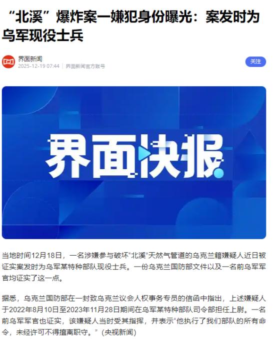拖了整整三年的北溪管道爆炸谜案,终于迎来了实锤时刻,让人万万没想到的是,亲手炸断欧洲能源命脉的,不是别人,正是欧洲倾尽资源援助的乌克兰,而更刺激的是,执行行动的竟然还是乌军现役人员。   回想2022年9月底那个傍晚,波罗的海原本风平浪静,突然间海面像开了锅一样冒出巨量气泡,震耳欲聋的闷响把附近的渔民吓得不轻。   瑞典地震台当场就记录下了数据,这次爆炸的强度相当于2.3级地震,四条北溪管道里直接被炸穿了三条,欧洲航天局后来测算,泄漏的甲烷量达到了44.5万到48.5万吨,堪称全球最大的人为甲烷泄漏事件。   当时全网都在猜是谁干的,各种说法满天飞。有人说是俄罗斯自导自演,想以此拿捏欧洲的能源命脉;也有美国记者爆料说是美国干的,还详细描述了美军潜水员如何在北约演习掩护下装炸药,可白宫一口否认,说这是虚假信息。   瑞典和丹麦很快就启动了调查,却迟迟不肯公开关键信息,甚至拒绝俄罗斯参与,这谜案一悬就是三年,谁都没往乌克兰身上想——毕竟那时候欧洲各国正拼了命给乌克兰送钱送武器,把它当成对抗俄罗斯的重要盟友。   转折点出在德国警方的坚持上,他们没像瑞典和丹麦那样草草收尾,反而花了三年时间一点点拼凑证据。   紧接着一个关键线索浮出水面,一艘名叫“仙女座”的帆船进入了调查视野,这艘船当年从德国罗斯托克码头出发,案发时间段刚好出现在波罗的海爆炸区域附近。   调查人员顺着这艘船往下查,很快就锁定了船上的七名船员,这七个人分工明确,有负责协调的核心人员,有四名资深潜水员,还有专门的爆炸物专家和船长。   更关键的是德国刑侦人员从潜水装备上提取到了DNA痕迹,这些痕迹和船上遗留的痕迹完美匹配,30万美元的行动资金流向也查得明明白白,最终指向了一家和乌克兰军方深度绑定的基金会。   2025年夏天,意大利警方根据德国签发的逮捕令,在里米尼省的海滩上抓到了关键嫌疑人谢尔吉·K,德国检方直接指控他是这起爆炸案的核心协调人。   随着谢尔吉·K被捕,更多重磅信息被扒了出来。乌克兰国防部自己泄露的文件显示,谢尔吉·K在2022年8月到2023年11月期间,一直是乌军某特种部队的现役上尉。他的前指挥官也站出来作证,明确表示谢尔吉·K当时必须服从部队命令,没有许可根本不可能擅自离开岗位,这就直接戳破了泽连斯基政府一直喊的“不知情”谎言。   涉案的七个人里,四个是乌克兰特种部队成员,爆炸物专家也是现役军人,就连船长都持有乌军后勤的通行文件,民间作案的说法彻底站不住脚。更让人震惊的是,嫌疑人的辩护律师在法庭上抛出了一枚重磅炸弹,称相关行为是“国家主权行为的一部分”,不该被刑事指控,这番话相当于变相承认这是乌克兰官方背书的行动。   有消息透露,2022年6月泽连斯基其实短暂批准过这一行动,后来在美国的压力下才紧急叫停,可乌克兰前武装部队总司令扎卢日内居然抗命,继续推进了整个计划。在战时状态下,军队高层擅自发动这样的跨国破坏行动,放在任何国家都是天大的政治地震。   这起案子实锤后,欧洲那边彻底炸了锅。要知道北溪管道被炸后,欧盟各国被迫高价从美国和卡塔尔买液化天然气,能源成本一路飙升,原本依赖俄气的国家更是苦不堪言。斯洛伐克总理之前就因为乌克兰拒绝续签俄气过境协议,公开批评泽连斯基,现在得知北溪是被乌军炸的,更是直言欧盟默许乌克兰的行为极不合理。   最讽刺的是,欧洲各国倾尽资源援助乌克兰,转头就被对方炸了自己的能源命脉。之前大家还在争论谁是真凶,现在证据链完整到无法辩驳,乌克兰现役军人亲手炸断欧洲能源命脉的事实,让很多欧洲民众难以接受。德国用三年时间织成的证据网,把这起谜案的真相扒得干干净净,也让乌克兰和欧洲之间的信任出现了无法弥补的裂痕。   现在再回头看2022年那个傍晚的爆炸,更让人唏嘘。这起事件不仅让欧洲陷入能源危机,还彻底改变了俄欧之间的能源合作格局,欧盟进口俄管道天然气的比例从2021年的40%降到了2023年的8%。而始作俑者乌克兰,一边拿着欧洲的援助,一边干着损害欧洲核心利益的事,这场持续三年的谜案,最终以这样荒诞又讽刺的方式画上了句号。