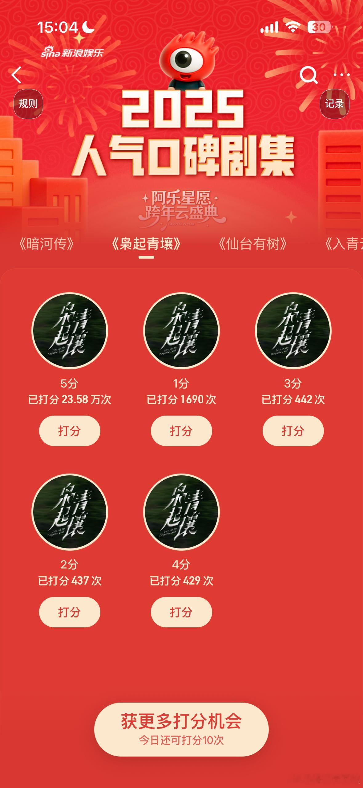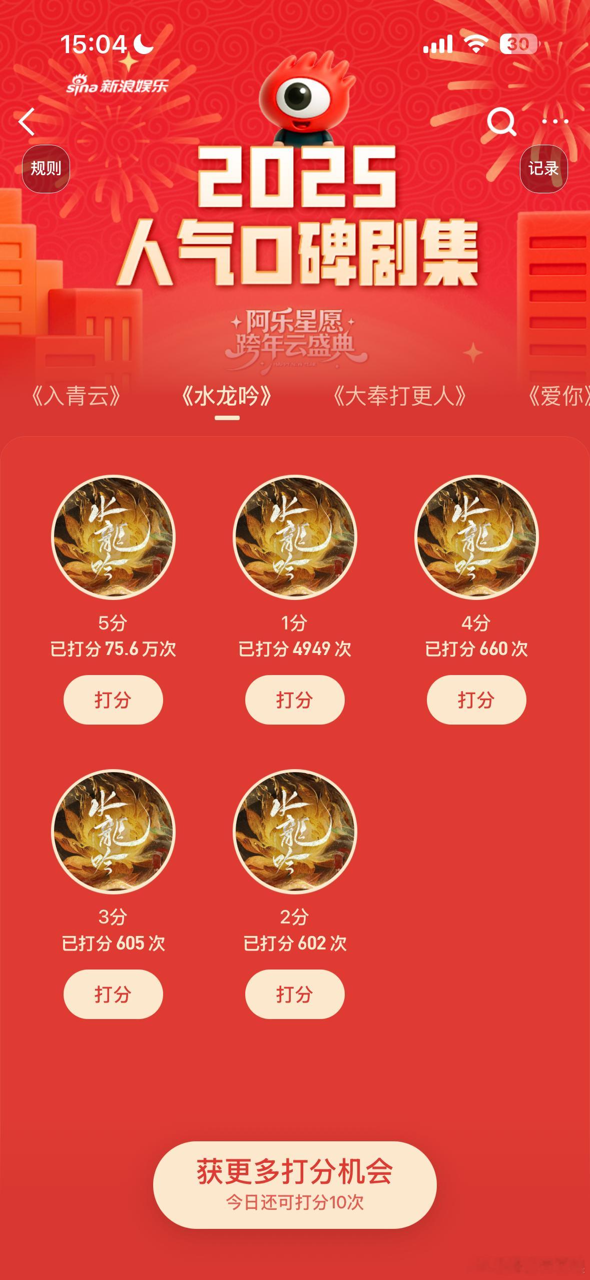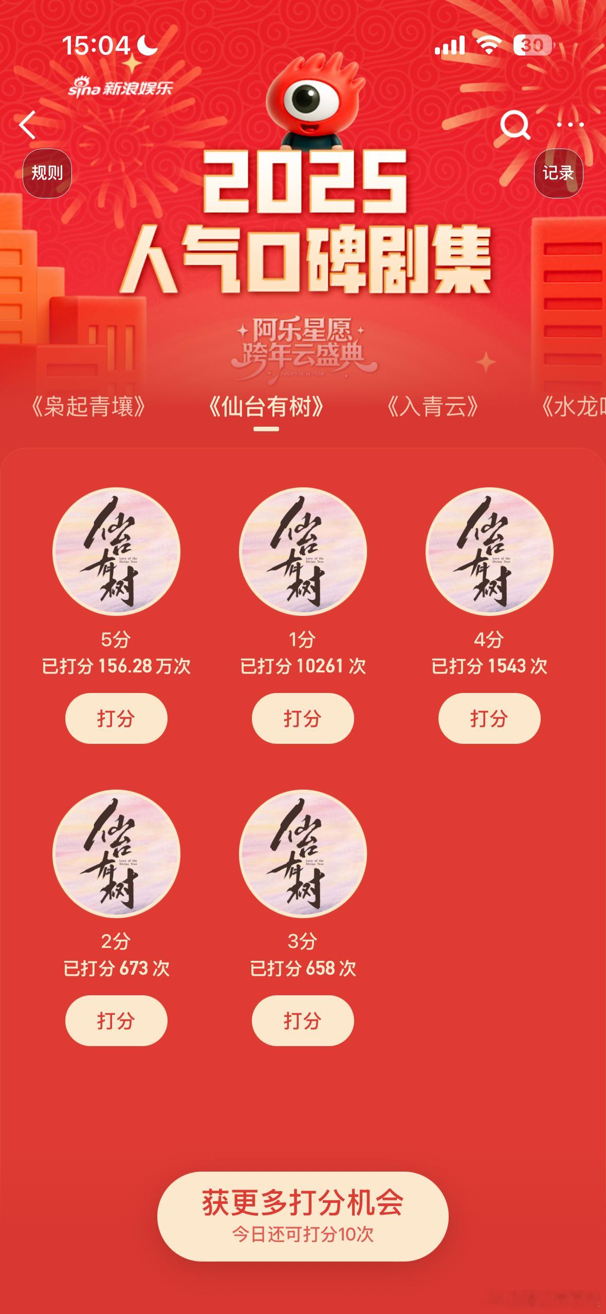 书卷一梦打分人数破三百万 “2025人气口碑剧”评分赛倒计时一天!《书卷一梦》打5分人数破三百万,目前每部剧均分排位如下,点击助力改变战局:2025人气口碑剧《仙台有树》《水龙吟》《利剑·玫瑰》《暗河传》《大奉打更人》《赴山海》《爱你》《入青云》《枭起青壤》《书卷一梦》