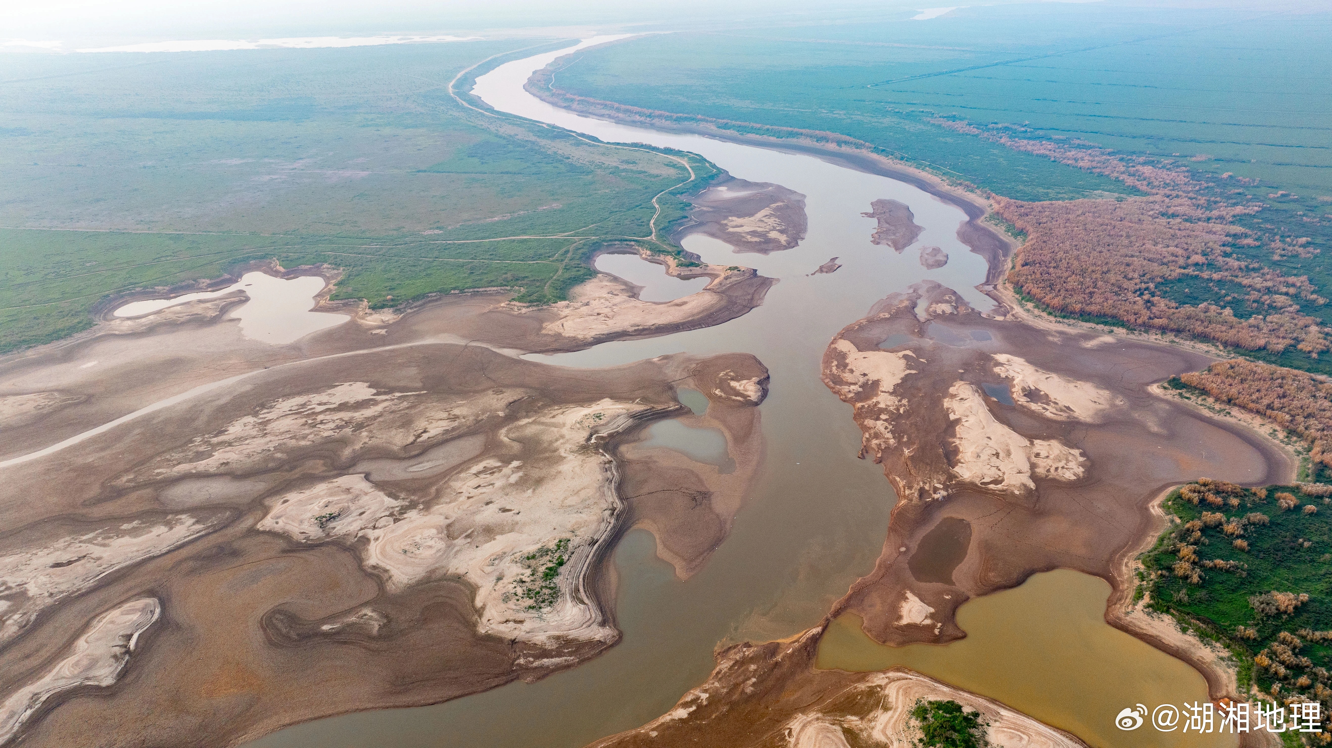 #极少见到这样的洞庭湖# 河口沙坝,一个非常陌生的地质名词。简单地说,它就是河流河口段沉积的弧形沙堆,是河流河口水流速度减慢,河沙堆积慢慢形成的河滩。沙坝使河流分流,出现汊道,新的汊道又会产生新的沙坝,使汊道再次分流,如此反复便逐渐发育成河口三角洲。而河口三角洲就是生息耕垦之地,是鸟与兽的乐园。新墙河的河口并不年轻,但大面积沙坝的发现却是近来的事。它的每一道弧线与沙堆,都刻录着洞庭湖千百年来的朝夕演替,洞庭湖的秘密尽在其中。#湖南##冬天##洞庭湖##发现湖南的美好# 洞庭湖