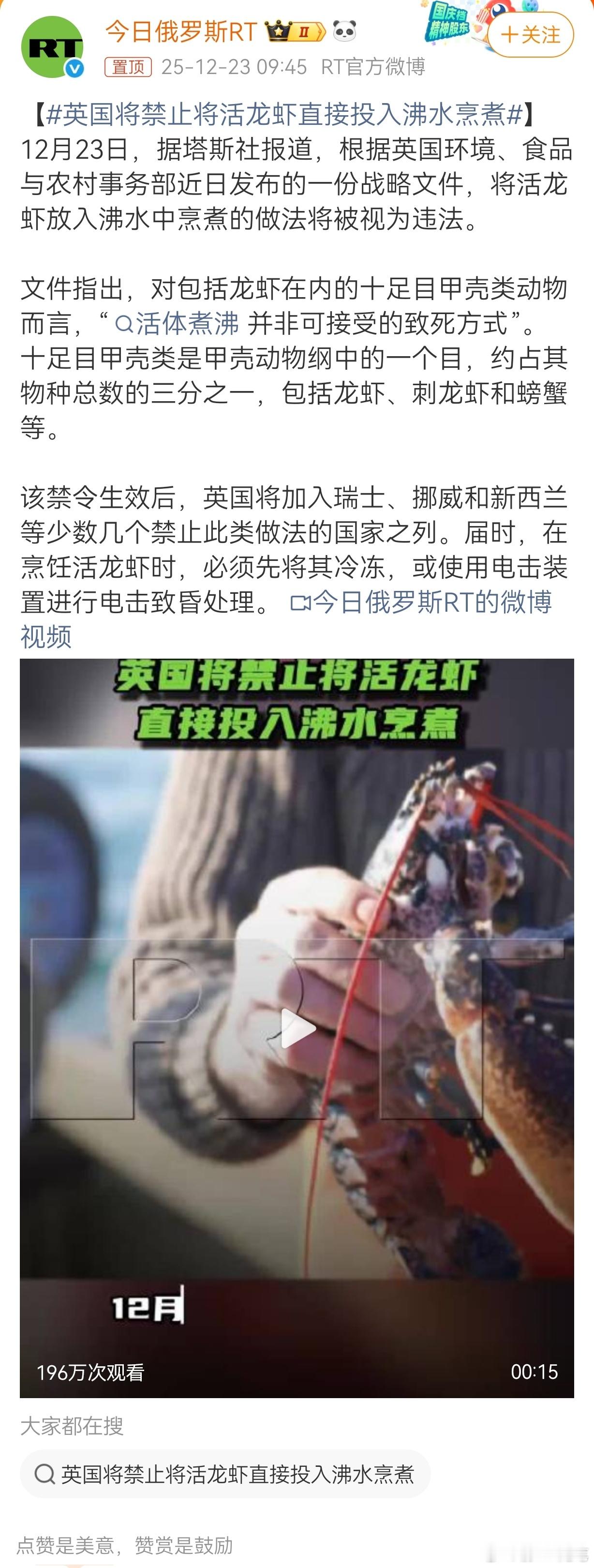 神经病啊,英国将禁止将活龙虾直接投入沸水烹煮!12月23日,据塔斯社报道,根据英国环境、食品与农村事务部近日发布的一份战略文件,将活龙虾放入沸水中烹煮的做法将被视为违法。那他们在阿富汗伊拉克利比亚对普通老百姓狂轰滥炸时候,是不是感觉人不痛?这种白左的滥爱变成影响老百姓自由了。这类似我们国内一些神经病地方不允许吃狗肉一样,爱拜狗爹的去,爱吃狗肉也可以,这才是社会自由。