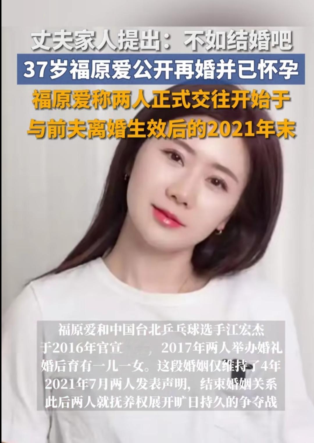 谁能想到,那个在赛场上哭鼻子、镜头前笑眼弯弯的“瓷娃娃”,如今已经37岁,悄悄完成了人生的又一次重启。前几年的婚变风波闹得人尽皆知,有人惋惜她的婚姻,有人吐槽她的选择,多少人盯着她的生活,等着看一场“一地鸡毛”的结局。 可她没被舆论裹挟,也没困在过去的遗憾里。2021年末离婚生效后,她慢慢遇见了新的缘分,在家人的祝福下走进再婚殿堂,如今还迎来了新生命。其实人生哪有什么标准答案,离婚不是失败,再婚也不是妥协,不过是在人生的不同阶段,勇敢选择让自己舒服的生活。 从赛场上的热血少年,到生活里的坚韧女性,福原爱一直用自己的方式书写人生。愿每个认真生活的人,都能不被过往定义,在兜兜转转后,找到属于自己的安稳与幸福。