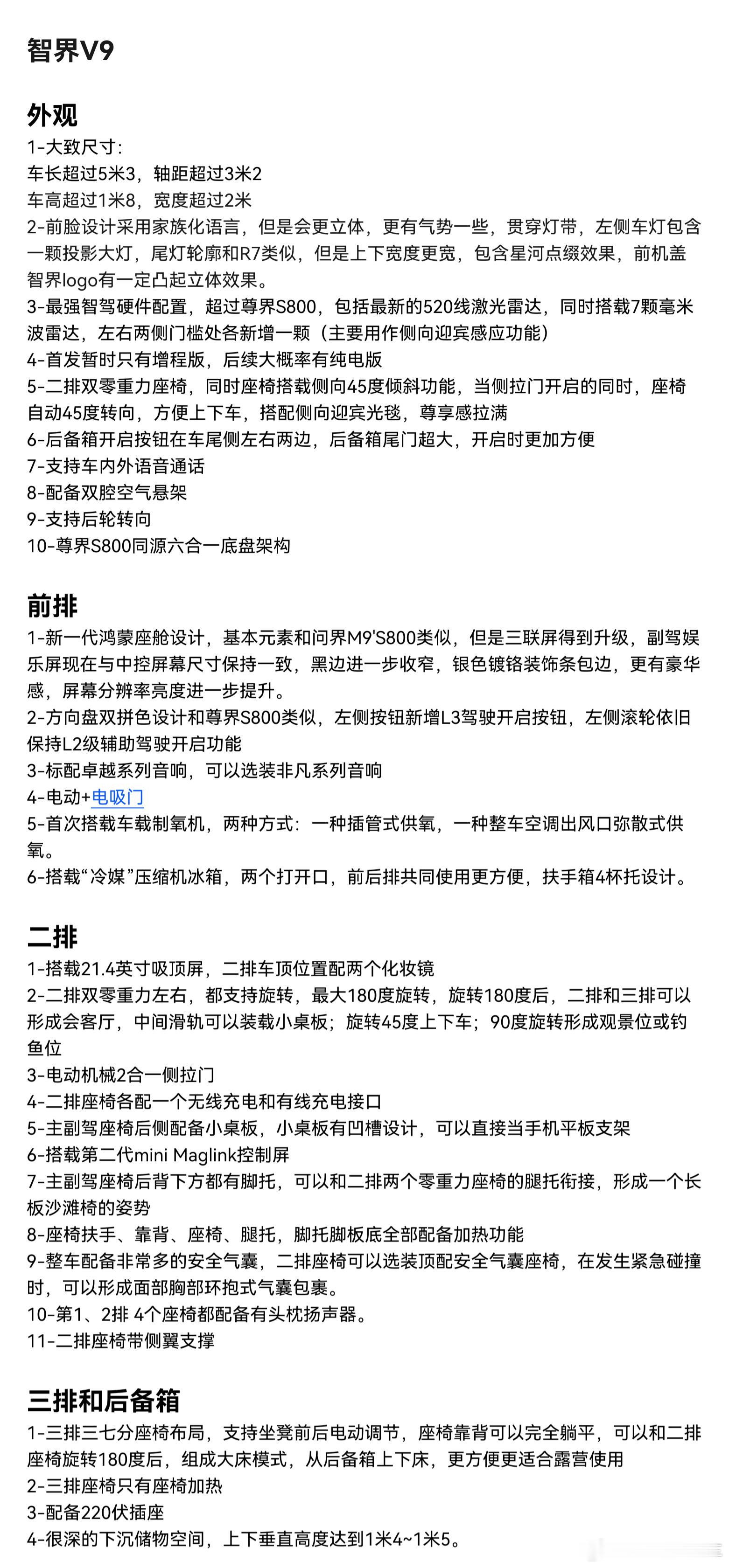 智界 V9 基本集齐市主流 MPV 优点,还有华为鸿蒙智行品牌渠道的加持,爆款的最后一环就是上市和定价了,而 V9 即是鸿蒙 MPV 主力也是前菜,明年还有尊界、享界MPV蓄势待发,各家新能源MPV 明年必将面对疾风。鸿蒙智行智界V9