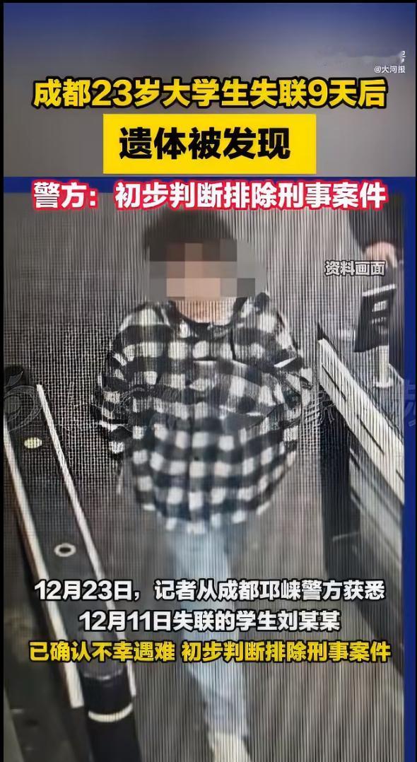 成都一名23岁男生失联9天后,遗体在河边被发现。家属称其生前性格内向,近期因工作压力和感情问题情绪低落。消息传出,无数人为年轻生命的消逝扼腕叹息。这场悲剧不仅是家庭的伤痛,更是一面镜子,映照出当代年轻人面临的心理困境与社会压力的交织,引发对生命脆弱性与心理支持体系的深刻反思。 据家属透露,男生在失联前曾向朋友倾诉“感觉活着很累”,随后独自离开住所。监控显示他最后出现在河边,此后音讯全无。家属报警后,多方搜寻无果,直至9天后遗体被打捞上岸,初步排除他杀。尽管具体死因尚未公布,但“压力大”“情绪低落”成为关键词——这并非孤例,近年来多起年轻群体失联事件背后,往往藏着心理危机的阴影。 事件发酵后,舆论场掀起两股浪潮:有人痛惜“花季生命戛然而止”,也有人质疑“为何不寻求帮助”。然而,更深层的追问直指社会痛点:当年轻人困在“内卷”的漩涡中,当“情绪低落”被视为“矫情”,当倾诉被贴上“脆弱”的标签,他们该如何挣脱精神的枷锁? 数据显示,我国抑郁症发病率逐年攀升,青年群体已成高危人群,但主动求助率不足10%。沉默背后,是病耻感的枷锁、支持系统的缺失,以及社会对心理健康的长期漠视。 值得关注的是,男生家属的声明中有一句令人心碎:“如果能早一点发现他的痛苦……”这声叹息,戳中了无数家庭的隐痛。心理危机往往隐匿于日常:一句抱怨、一次沉默、一次深夜的徘徊,都可能成为求救信号。但快节奏的社会中,亲友的疏忽、同事的冷漠、甚至医疗资源的不足,都可能让求救信号石沉大海。更严峻的是,部分人仍将心理问题等同于“想不开”,忽视了其生理与社会的双重根源。 要避免悲剧重演,需构建多重防线。于个人,要破除“强者”滤镜,学会接纳脆弱,勇敢求助;于家庭,需以倾听代替说教,用陪伴缓解孤独;于社会,学校应强化心理健康课程,企业应关注员工情绪状态,社区应普及危机干预知识。 更重要的是,全社会需扭转“心理问题=软弱”的偏见,让心理咨询像感冒就医般自然。 评论区聊聊:你身边有人曾陷入心理困境吗?你认为哪些方式能真正帮到他们?或许你的分享,能成为某个迷茫者的救命稻草。 年轻生命的消逝不该仅换来短暂的唏嘘。当23岁的灵魂永远定格,我们该追问:是谁推他走向深渊?又能做什么拦住下一个坠落的年轻人?答案,藏在每个人的行动中——对痛苦的敏感,对求助的包容,对生命的敬畏。愿这样的悲剧,不再重演。 (案例来源:极目新闻)