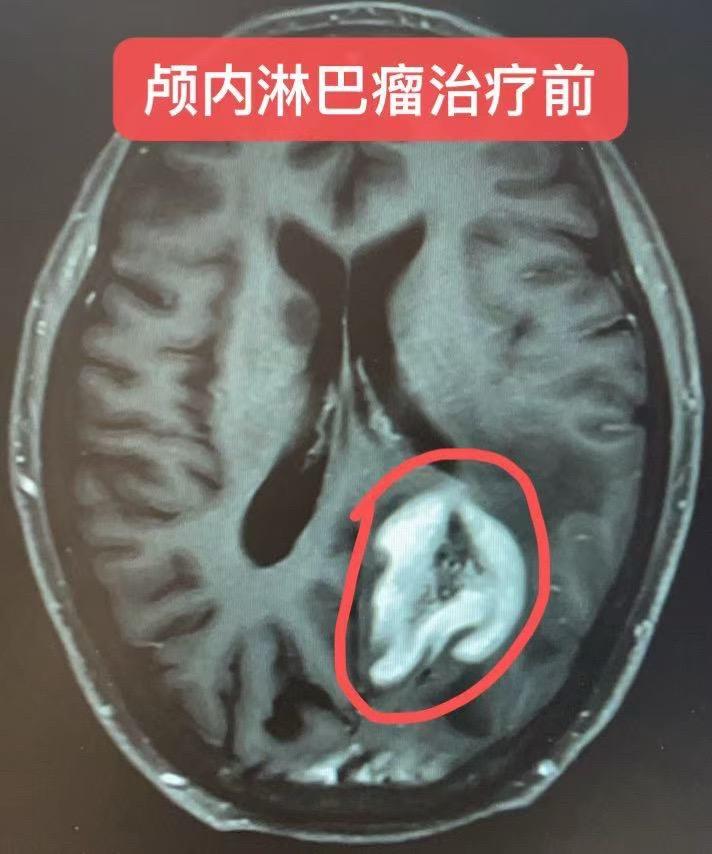脑部淋巴瘤的治疗。脑部淋巴瘤:一般需要立体定向穿刺活检,该患者弥漫大B淋巴瘤,大剂量MTX无效,肿瘤增大,随后采用全脑➕局部精确放疗,利妥昔单抗➕BTKI,肿瘤消失,生活质量好!如果高龄➕身体虚弱,放疗可以调整为仅 局部精确放疗,因为靶向药物作为补充,效果也很好!!!!