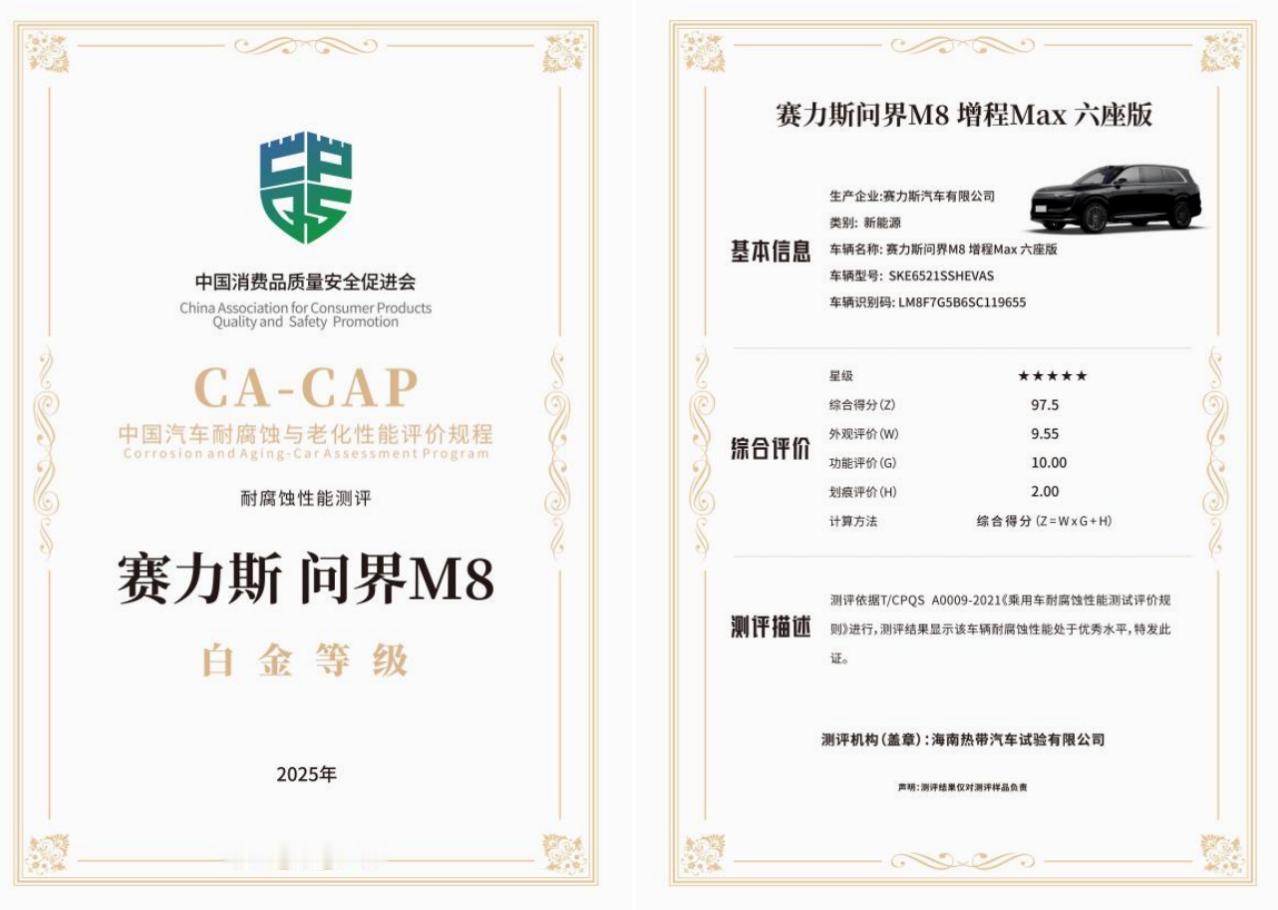 近日,中国汽车耐腐蚀与老化性能评价(CA-CAP)测评结果正式揭晓,问界M8增程