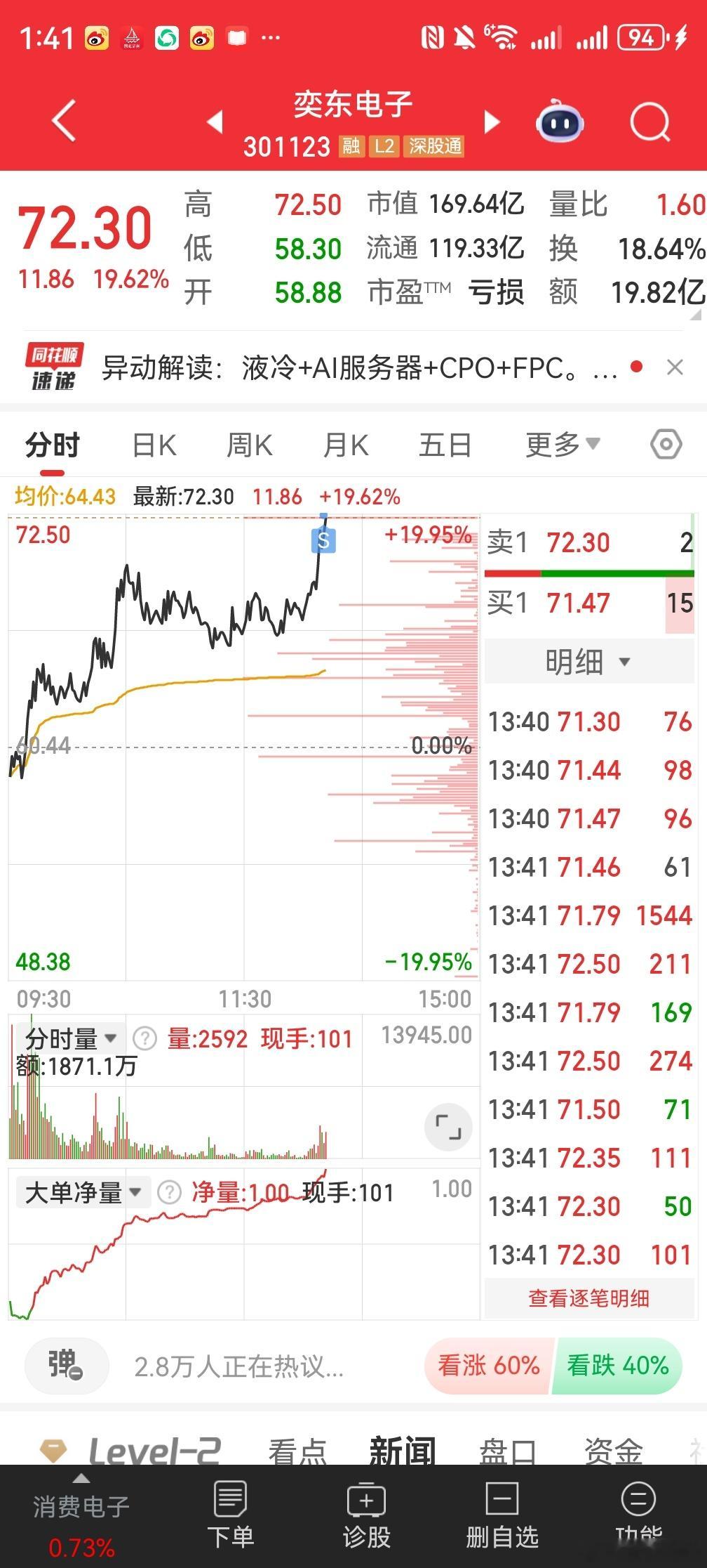 今天果真把门给焊死了,想亏本出都出不了,看尾盘60多万手的封单量,估计明天又是1