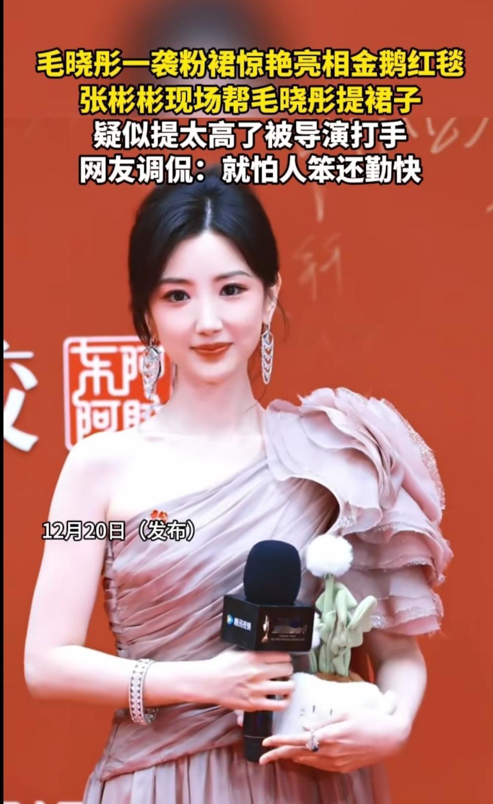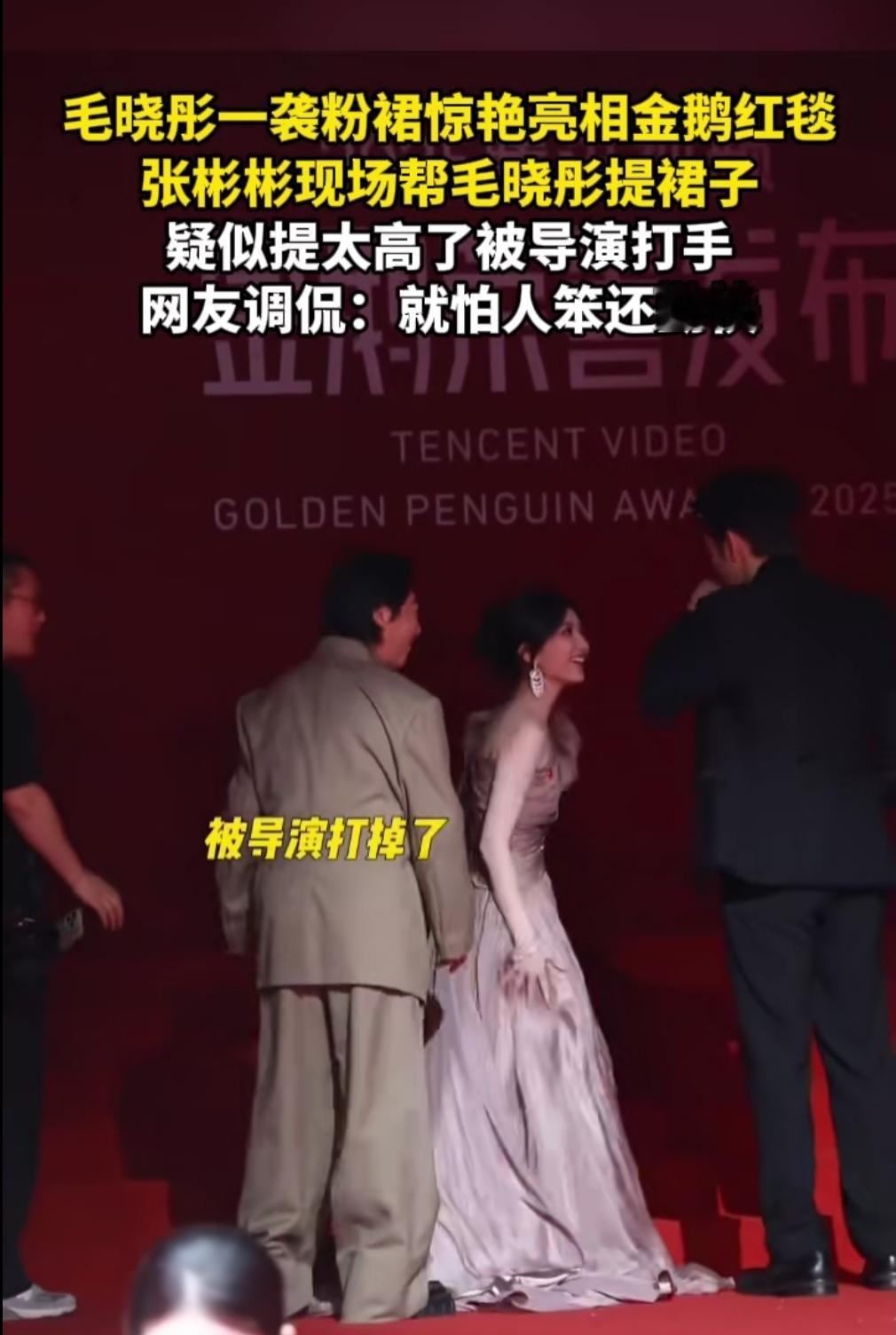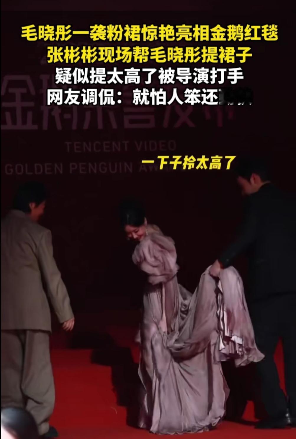 金鹅荣誉红毯的名场面里,毛晓彤粉裙飘飘的样子刚让人眼前一亮,下一秒张彬彬帮提裙摆却被导演抬手“制止”的画面,直接让网友看愣了!本来是绅士解围的暖心瞬间,怎么就闹得有点小尴尬? 其实仔细看就知道,张彬彬大概率是怕裙摆拖地绊到毛晓彤,着急之下提得稍高了些。导演的动作更像下意识提醒,而非真的“打手”,但这一幕还是戳中了很多人——社交里的分寸感真的太微妙了。 毛晓彤全程保持微笑,既没让同伴难堪,也没让场面冷掉,这份从容太圈粉。其实不管是红毯还是日常,好心办坏事往往就差一点分寸,懂得体谅别人的心意,也懂得委婉纠偏,才是高情商的相处之道。