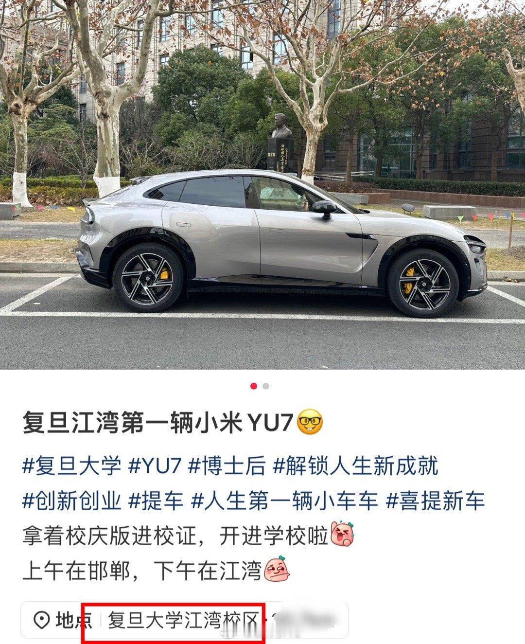 恭喜复旦大学江湾小区的第一辆小米YU7,还是一位博士后,不过这应该不是第一辆