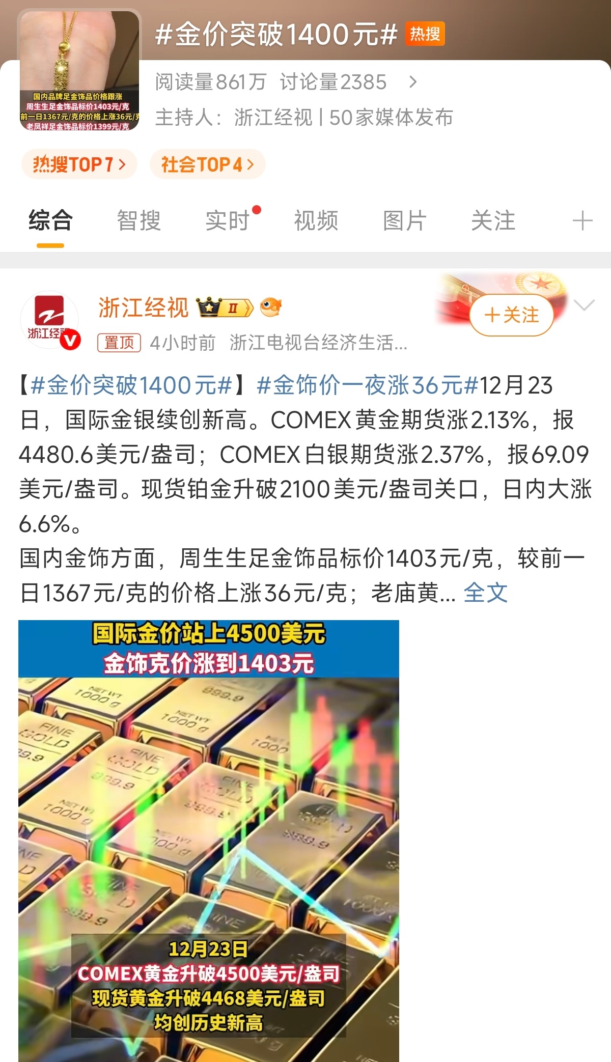 金价又涨了,到了1000块。金首饰的价格到了1367元。金价已经涨疯了,可是我