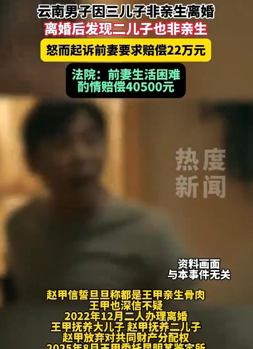 毁三观!云南,一对夫妻结婚9年生了3个孩子,可第三个孩子来临时,丈夫却从时间上发现不对劲,这不可能是自己的孩子,妻子承认孩子是别人的,两人因此离婚,可令男子没想到的是,离婚后他发现二儿子也不是自己亲生的,这一下他彻底懵了 王先生捏着法院判决书的手指泛白,“4.05万元”的数字在A4纸上显得格外单薄。这是他近十年婚姻、四年多抚养付出换来的最终结果——前妻因欺骗赔偿的全部金额。 离婚那天,妻子在协议上签字时很“爽快”:放弃所有财产,带走二儿子,留下大儿子。她当时拍着王先生的胳膊说:“老大老二肯定是你的,放心。” 王先生信了。那时他刚因老三的“时间疑点”和妻子摊牌,从孕期推算到同房时间,怎么算都对不上。妻子低头承认“孩子不是你的”,干脆利落的态度让他以为只是一时糊涂。 直到离婚半年后,二儿子的一次发烧。护士抽血时,王先生无意间瞥见血型报告,突然想起自己和妻子的血型组合,怎么也生不出这个血型的孩子。 他偷偷采集了大儿子和二儿子的样本,躲进了鉴定中心。三天后去拿报告,走廊的灯惨白,他手抖着翻开——老二那栏,“排除亲生血缘关系”几个字像烧红的烙铁,烫穿了纸页。 原来离婚协议里“带走二儿子”不是让步,是心虚;“留下大儿子”不是信任,是侥幸。他相当于用自己的财产和抚养义务,给别人的两个孩子“买单”。 起诉时,王先生算了笔账:老二从出生到离婚,四年抚养费、教育费、医疗费,加上精神损害,总共索赔22万。可法庭上,前妻拿出了低保证明和租房合同,说自己一个人带孩子,每月工资不足三千。 法院最终判了4.05万。1.5万精神赔偿,2.55万抚养费返还。有人在网上骂“法律不公”,王先生却盯着判决书末尾那句“结合过错程度及被告经济能力”,突然笑了——原来连惩罚,都要受制于骗子的“贫穷”。 这让很多人想起那个常见误区:只要养了孩子,就得负责到底。其实《民法典》第1073条早有规定,非亲生子女的抚养费,有权要求返还。但前提是,你得先发现“非亲生”这个事实。 就像王先生,如果不是那次偶然的血型暴露,他可能永远活在“老大是亲生”的自我安慰里,继续抚养着别人的孩子,维护着早已腐烂的婚姻。 也有人说,养了那么久,没感情吗?可感情是相互的。当妻子用两个孩子的身世编织谎言时,她对这个家的感情,又剩多少? 从更深层看,这场闹剧戳破了婚姻里最危险的幻觉:我们总以为“结婚多年”“有了孩子”就是感情的保险箱,却忘了信任一旦有裂缝,任何细节都可能成为压垮骆驼的稻草。 王先生现在偶尔会去看大儿子。孩子不知道自己是这场骗局里唯一的“幸存者”,还会奶声奶气地问“爸爸什么时候接我回家”。他每次都笑着答应,转身却红了眼。 婚姻里最可怕的,不是争吵,不是贫穷,而是你以为的“岁月静好”,不过是对方精心维持的表演。等舞台坍塌,你连自己站在哪里,都搞不清了。