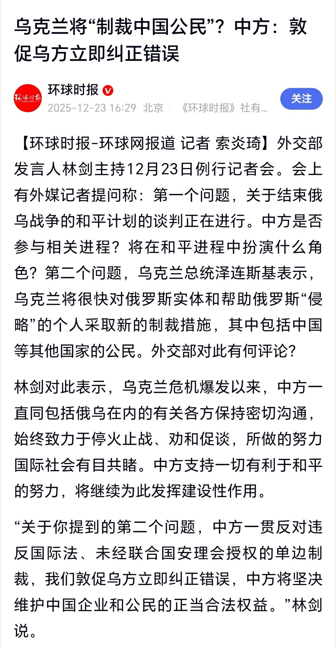 中方回应乌克兰或将制裁中国公民泽连斯基本身没有牌,还喜欢刷存在感。