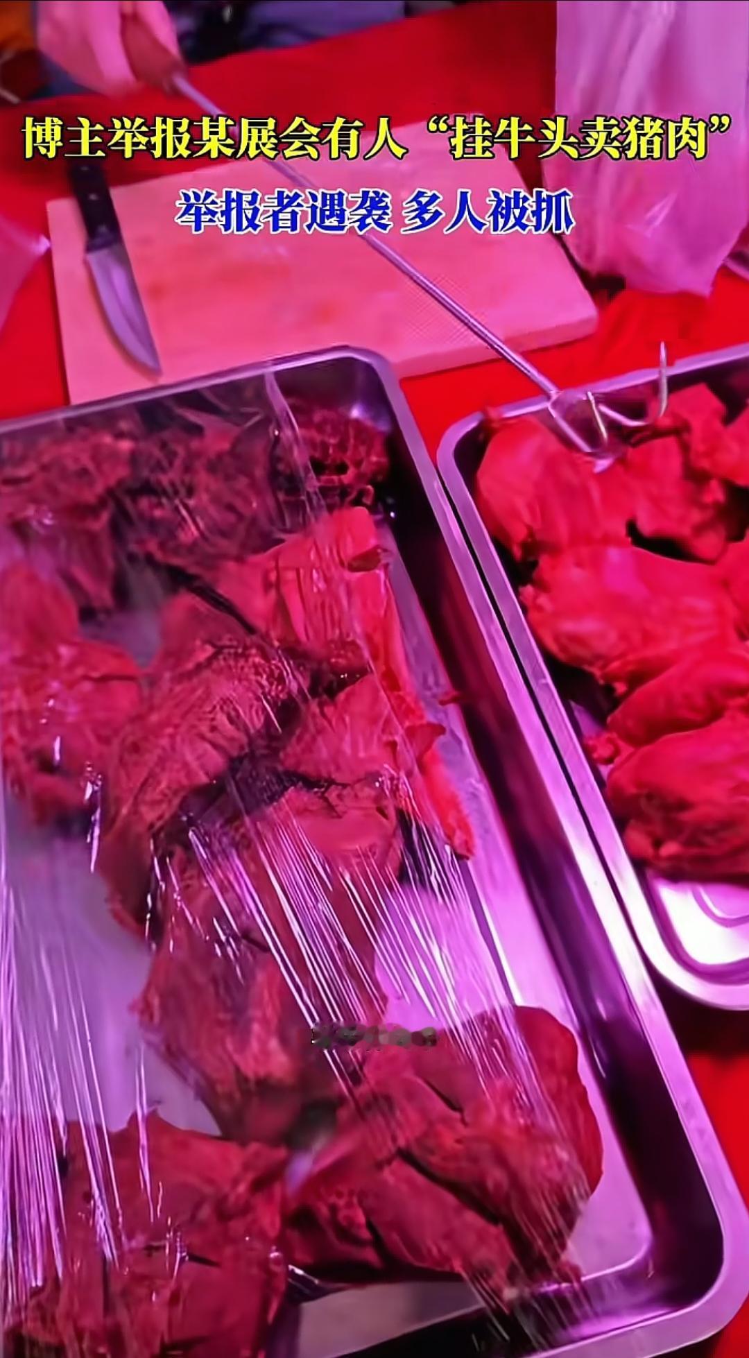 男子现场举报商家将猪肉当牛肉售卖遭遇群殴,市场监管部门工作人员就在五六米外看着,没有做任何有效拦阻 这位举报的男子耳朵被缝了十几针,肋骨被打断两根,肺部挫伤,目前鉴定是轻伤二级。 警方已经抓捕5人,案件正在进一步侦办之中。制假售假人员还要殴打举报人员,这个就不是单纯的制假售假了。 这种展会上销售的食品,即使是消费者吃出来有什么问题,也很难再追溯,是即使是吃出来是猪肉大多数人也只当买一个教训。 各位是怎么看的?欢迎评论区留言。 来源:海报新闻