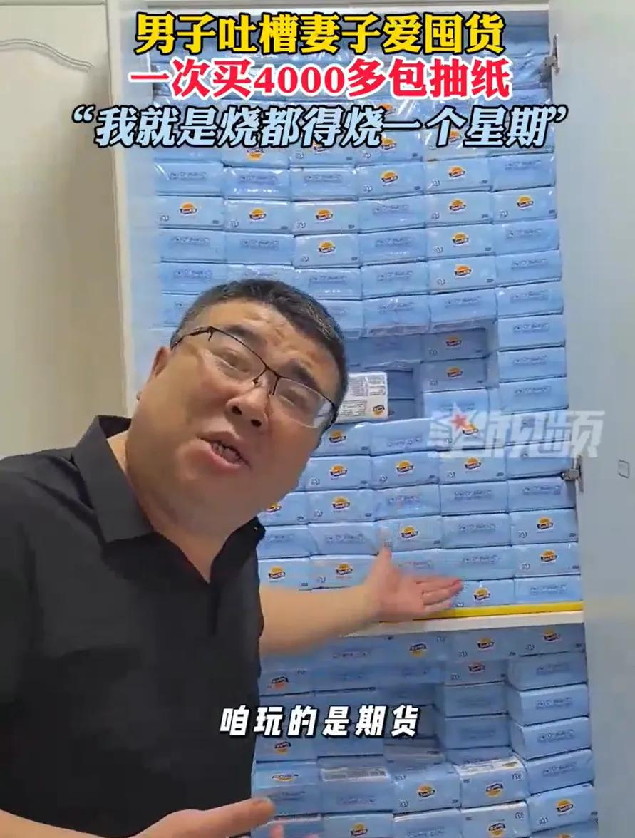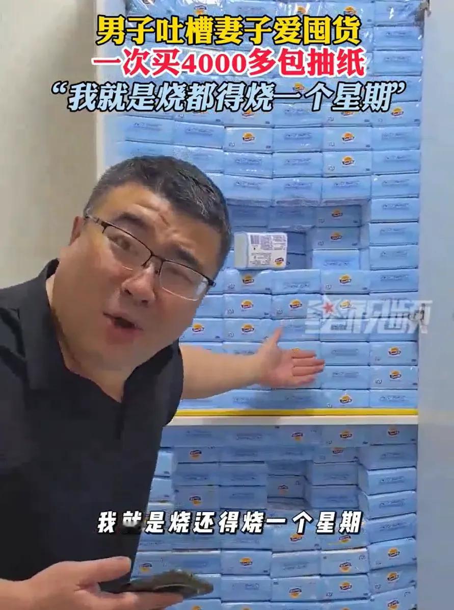 是个狠人!陕西西安,一男子在网上吐槽,妻子有一个特殊的癖好,就是爱囤货,其中最夸张的,是妻子在2年前一次性买了4000多包纸抽,放在家里直接堆出一个“纸抽墙”,男子:咱们玩的是期货,过期货! 推开他家房门,没有什么精致装修的视觉冲击,最先映入眼帘的就是那堵层层叠叠的“白墙”,走近了才发现,这墙全是由抽纸包堆出来的,密密麻麻四千多包,占了客厅大半空间,场面相当壮观。男子每次看着这堵墙,心里都五味杂陈,三分无奈七分苦笑,实在搞不懂媳妇这波操作的意义。 这事儿还得从两年前说起,当时某电商平台搞大促,掌握家里财政大权的妻子精准锁定了一款号称“史低价”的抽纸。折算下来平均一包才六毛多,比超市正价便宜了一半还多,对于精打细算的主妇来说,这价格简直跟“捡钱”没区别。抱着“过了这村没这店”的抄底心态,妻子指尖一划,豪掷2593元清空了购物车,当时只觉得数字划算,完全没考虑后续的存放和消耗问题。 等快递到了驿站,夫妻俩才真切感受到什么叫“贪多嚼不烂”。四千多包抽纸装了无数个快递箱,两人取货取到两手发酸,跟蚂蚁搬家似的一趟趟往回运,好不容易才把这堆“战利品”塞进屋里。看着客厅里堆起的“纸抽墙”,男子当时脑子就嗡嗡的,第一反应就是:这得用到猴年马月去? 本以为这是桩省钱的壮举,可两年时间悄无声息溜走,现实却给这笔账狠狠泼了一盆冷水。 那堵屹立在家中的“纸抽墙”,从视觉上看几乎没矮下去多少,反倒是纸张的状态开始让人心里发毛。西安夏天的闷热潮湿本就厉害,普通住宅阳台的通风条件又有限,长期堆积让这些原本雪白的抽纸面临严峻考验。 现在随手从“墙”里抽出一包,不仅外包装隐隐泛黄,手感也大不如前。新纸特有的绵软韧劲消失了,取而代之的是受潮后的生涩感。 看着这堆可能这辈子都用不完的库存,男子忍不住调侃,说这堆玩意儿真要点上火,估计没个七天七夜都烧不完。这话虽是玩笑,却道出了最尴尬的处境,抽纸的保质期通常在三到五年,如果不开启疯狂消耗模式,剩下的时间大概率跑不赢霉菌滋生的速度,到时候别说省钱,这些受潮发霉的纸张,只能变成家里昂贵的垃圾。 这事儿不仅是这户人家的黑色幽默,更精准击中了无数家庭的“痛点”。曾有机构在2023年做过一项调研,数据显示超过42%的已婚女性在面对日用品“超低价”标签时,几乎没有任何抵抗力,尤其是卫生纸、洗衣液和牙膏这“居家三巨头”,更是囤货重灾区。 就像男子妻子常挂在嘴边的理由:“碰到便宜不买,心里就跟丢了钱似的难受。”这种“不买立亏”的心态,在社交平台上引发了巨大共鸣。有网友晒出同款烦恼:疫情期间抢购的几十盒口罩,至今连塑封都没拆,堆在角落落灰;老妈贪便宜囤的洗衣液塞满了衣柜顶层,瓶身上的灰尘厚得能积硬币。 这种过日子的方式,看似把每一分钱都花在了刀刃上,实则是用极其宝贵的生活空间和时间焦虑,去置换那微不足道的单价差额。六毛五一包确实便宜,但如果算上仓储的拥挤、受潮过期的风险,以及为了“用完”而产生的心理负担,这笔账早就亏到了姥姥家。 精打细算固然是持家的美德,但若只是为了账面上的一时爽快,让家变成了仓库,让生活给库存让路,那这所谓的“赢”,也不过是另一种形式的自我安慰罢了。