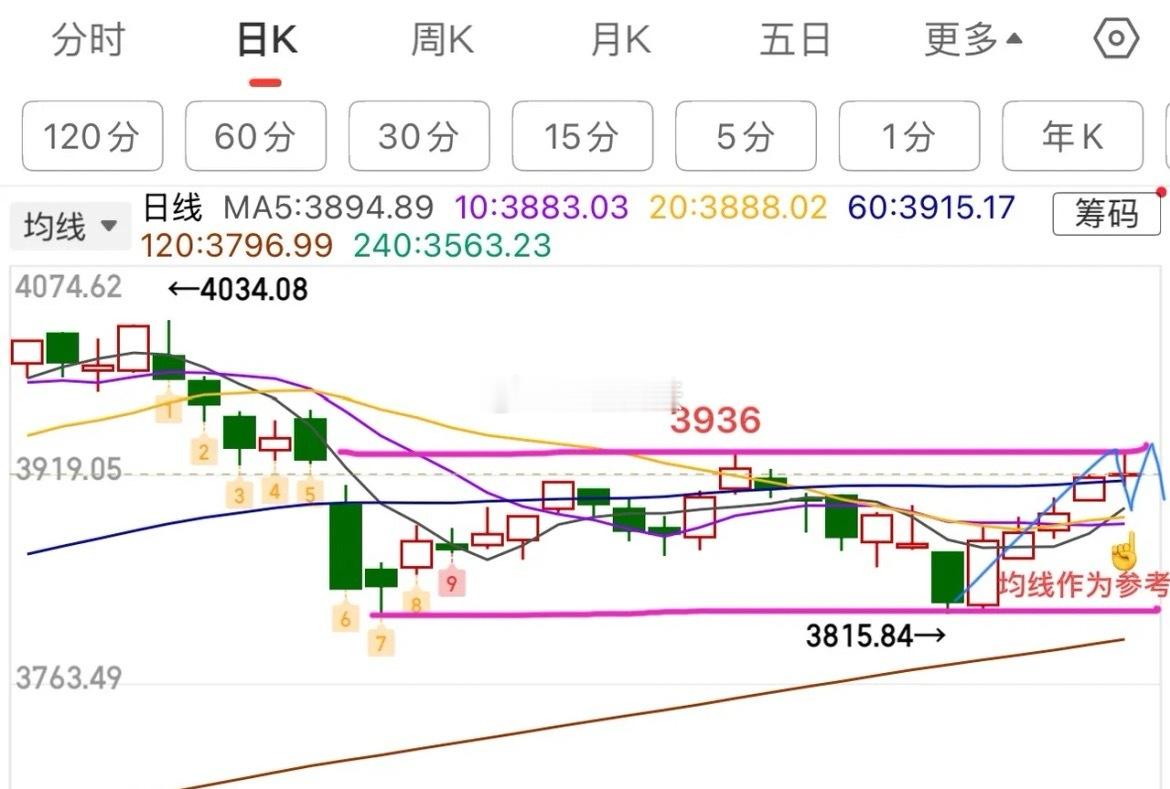 大盘冲高回落,短线震荡在所难免! 上证指数走势总体还是比较符合预期的,3936附近一次性突破难度大,昨天收评也提示过,指数连阳再加上压力位附近会有获利抛压,大概率会有震荡或压回。一般来说压力突破之前,会有个先压回做个震荡小中枢消化一下,也可以叫蓄势,再向上突破就比较轻松。当然3936能不能突破站稳,依旧是后续的关注重点,走势可以一步步跟踪,没有突破之前就还是震荡看待。另外,走势是否还处于向上反弹的结构,前提条件就是下方均线不能跌破,回调力度过大也不行,如果跌破下方均线那么就又得奔着中枢下轨去了,所以会不会再去攻3936压力,就一个要求,守住均线上方做震荡。