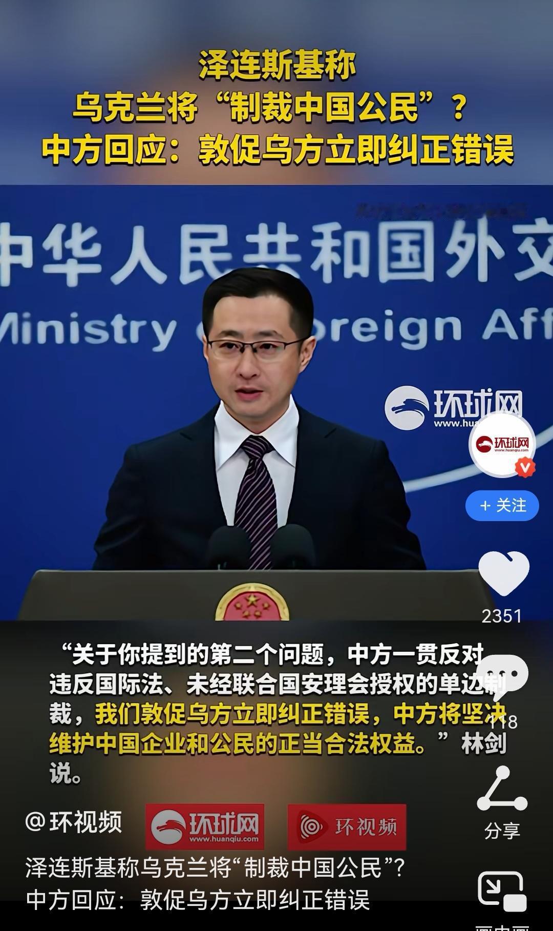 泽连斯基要制裁中国公民,喝醉了?还是吃错药了?