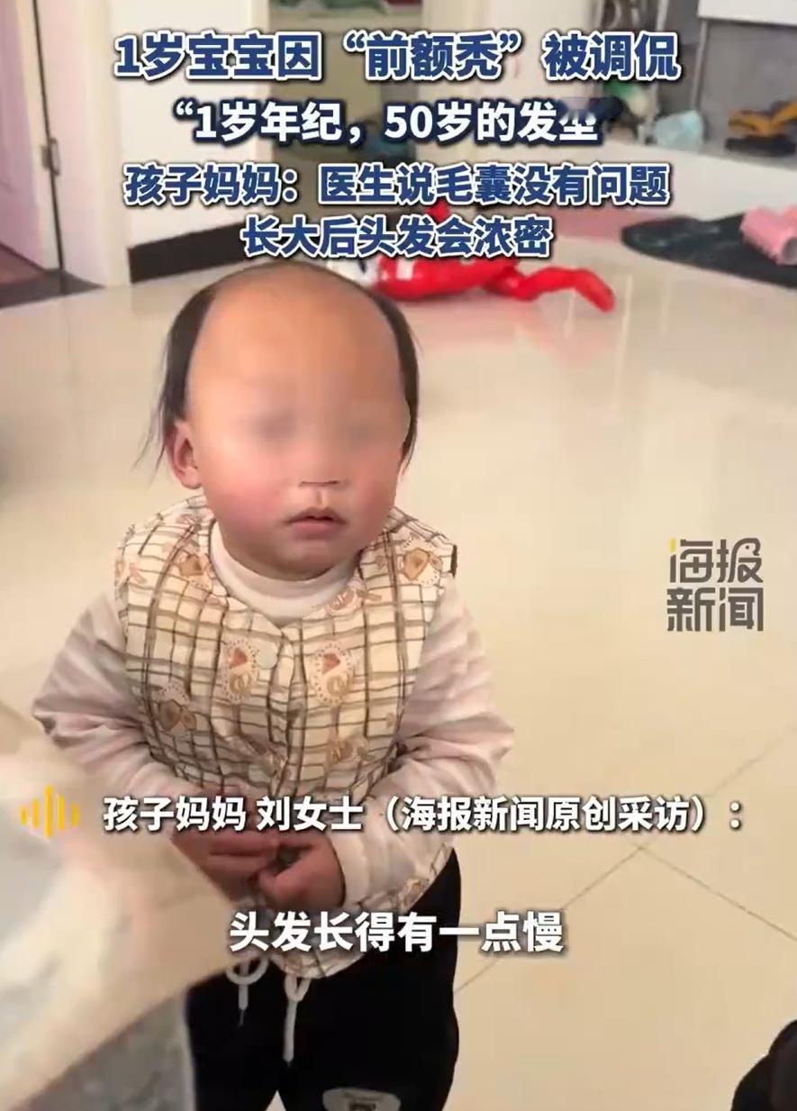 这届网友也太会形容了!1岁宝宝前额头发稀拉拉,直接被调侃“1岁年纪,50岁大佬发型”,圆乎乎的脸蛋配着清爽发际线,反差萌直接戳中笑点~ 孩子妈妈回应超实在:从没给娃剃过胎发,哥哥小时候也是同款“地中海”,特意带娃看了医生,人家说毛囊没问题,就是遗传+婴儿期毛囊没发育成熟,等2-3岁自然会变浓密。 其实很多宝宝都有这情况,不是缺营养也不是有毛病,纯粹是成长路上的“阶段性颜值bug”~ 家长别瞎焦虑瞎折腾,不用强行剃发也不用乱补,给毛囊点时间,小绒毛迟早会长成浓密秀发!