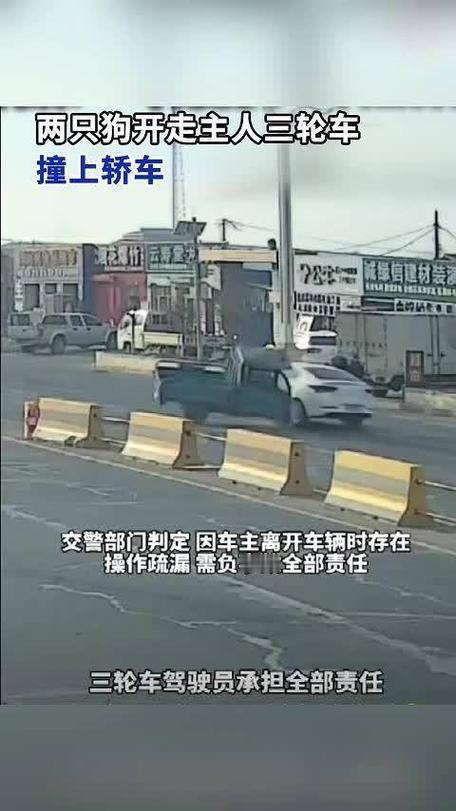 黑龙江大庆这起车祸也太离奇了!车主停三轮车去买水果,没拔钥匙也没拉手刹,把两只牧羊犬留车上,结果5分钟后,狗子误触操控装置——一只扒脚踏板、一只撞方向盘,直接把三轮车开上马路,撞上了正常行驶的白色轿车。 监控拍得明明白白,网友笑称“狗界最佳拍档,一个油门一个方向”,但玩笑归玩笑,交警认定车主负全责,得赔偿轿车损失。这哪是狗子闯祸,分明是车主疏忽大意! 不管开啥车,停车拔钥匙、拉手刹都是基本操作,千万别图省事心存侥幸。这起“狗开车”事故,就是给所有车主敲警钟:安全细节偷懒,迟早要为疏忽买单!