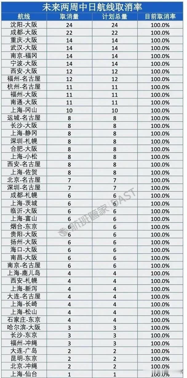 全部取消!这是对日经济人民战争的重大胜利,未来两周46条中日航线取消全部航班。