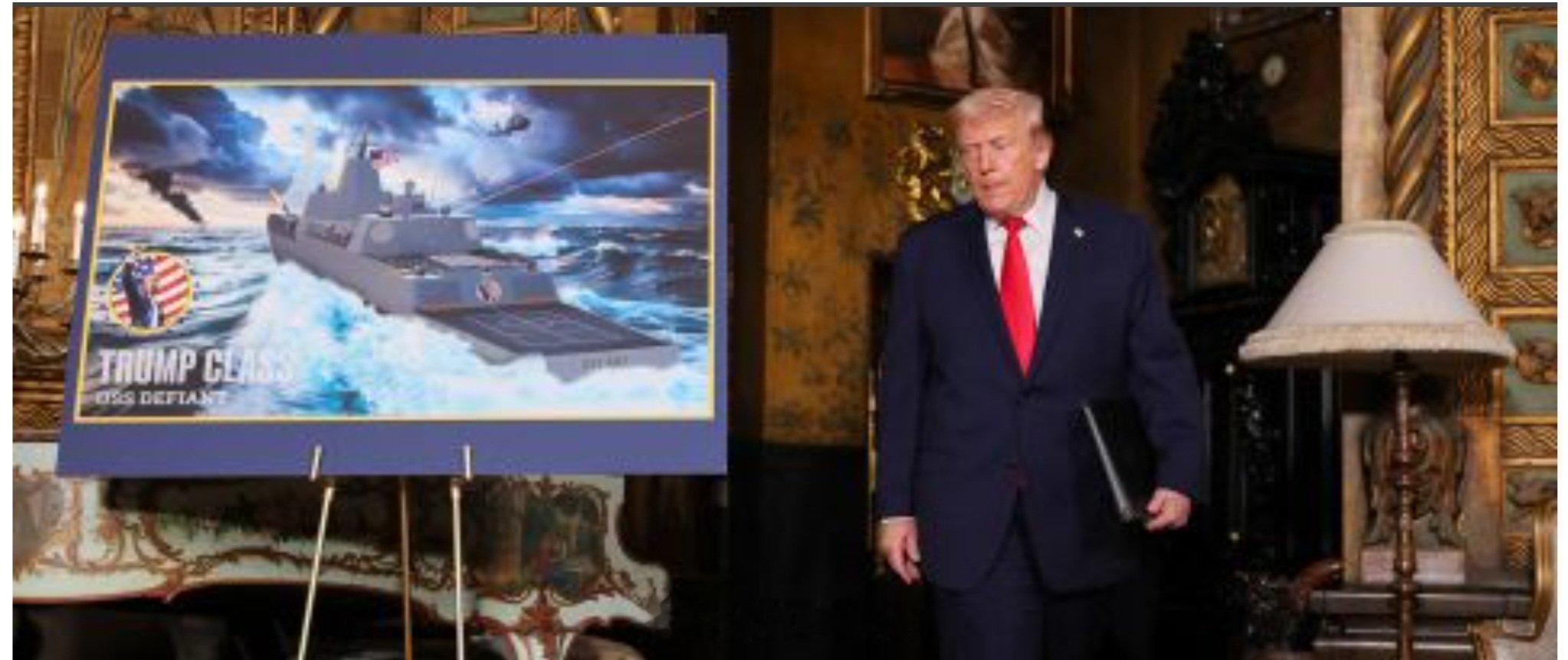 特朗普宣布建造3-4万吨级的“特朗普级”超级战舰12月22日特朗普在海湖庄园召开记者会宣布美国将打造“新黄金舰队”,并建造比现有海军战舰“强100倍”的3-4万吨排水的“特朗普级”新型超级战舰,特朗普说这将是美军“最快、最大的战舰”,战斗力将比现有舰艇“强大百倍”。懂王级战舰排水量将达3-4万吨,配备超高音速武器、轨道炮、巡航导弹和激光武器,将成为美国海军舰队的旗舰。之后将很快再建造8艘,最终将拥有总共20到25艘。美国海军部长约翰·费伦称“特朗普级战舰”将成为“世界上最大、最致命、功能最全面、外观最精美”的战舰。美国国防部当天发表声明说,新型战舰目前处于设计阶段